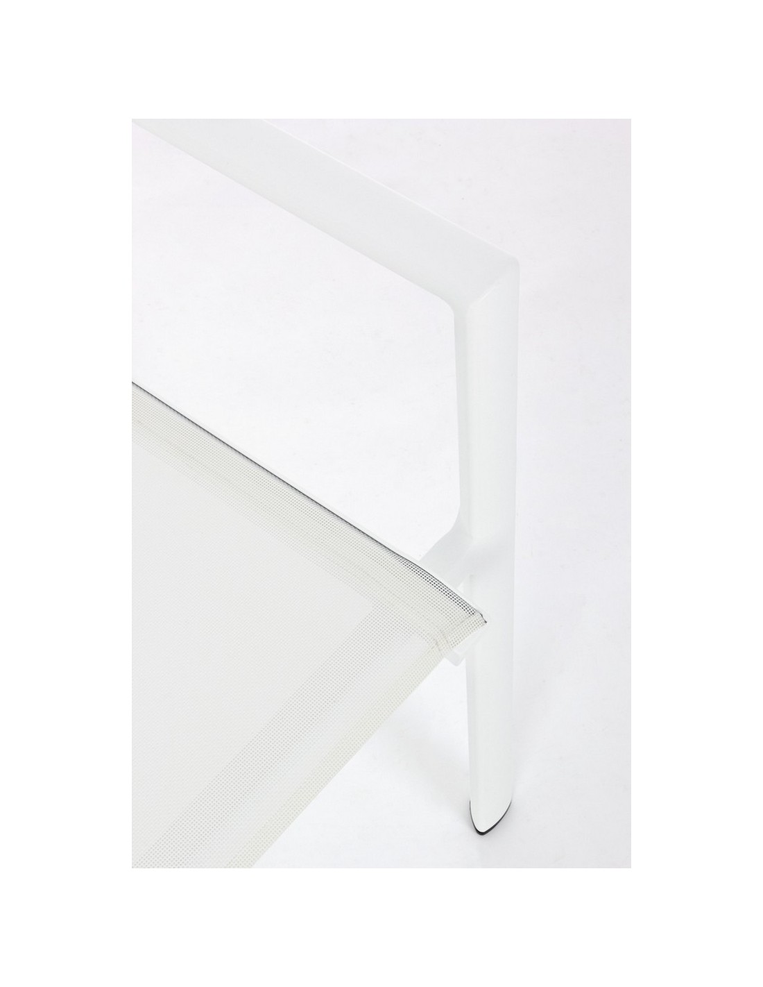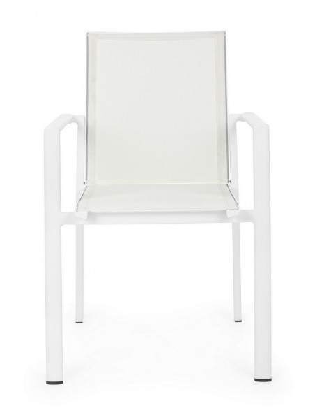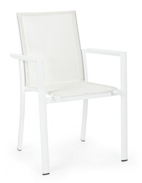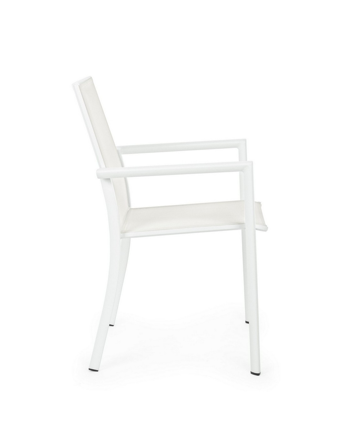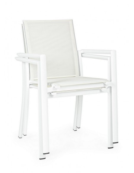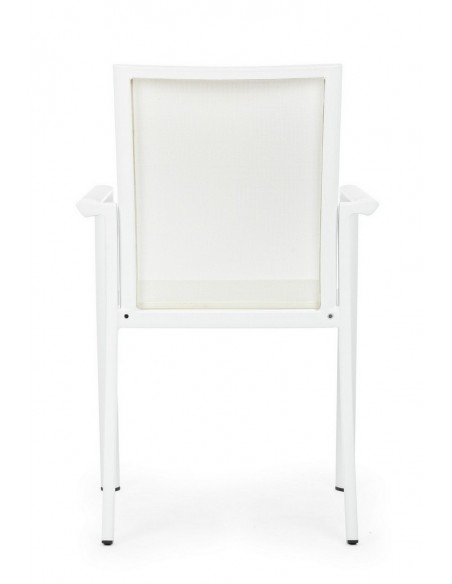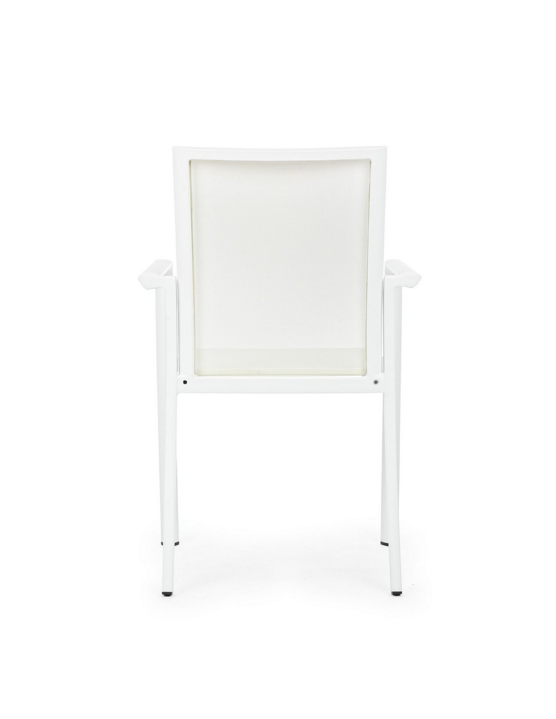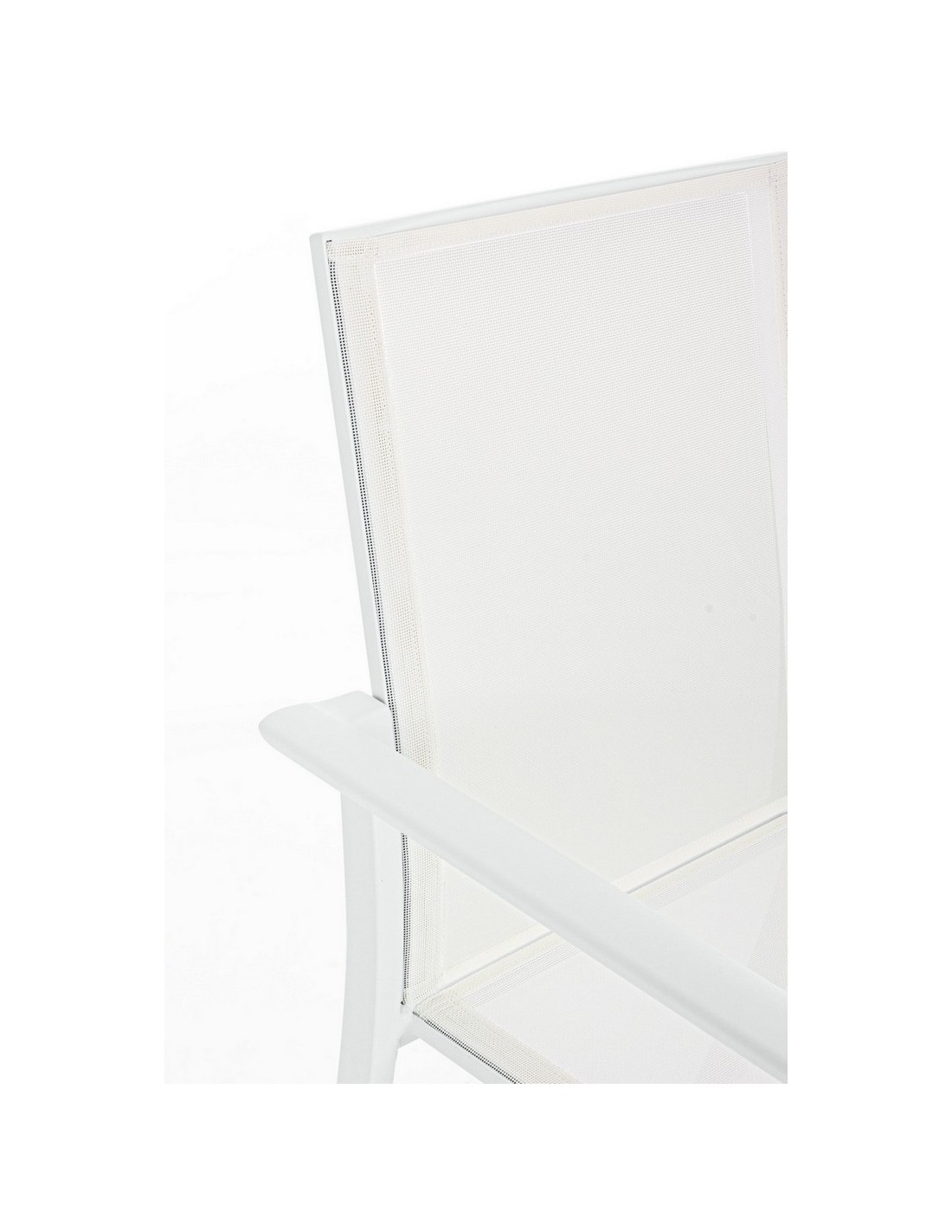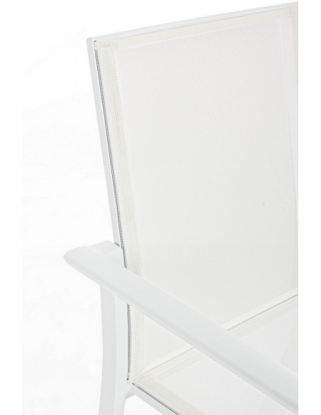 Sæt med 4 havestole med armlæn, udført i et design af hvid pulverlakeret aluminium og textilene. Stolen måler 88 cm i højden over ryggen og 45 cm i siddehøjden.