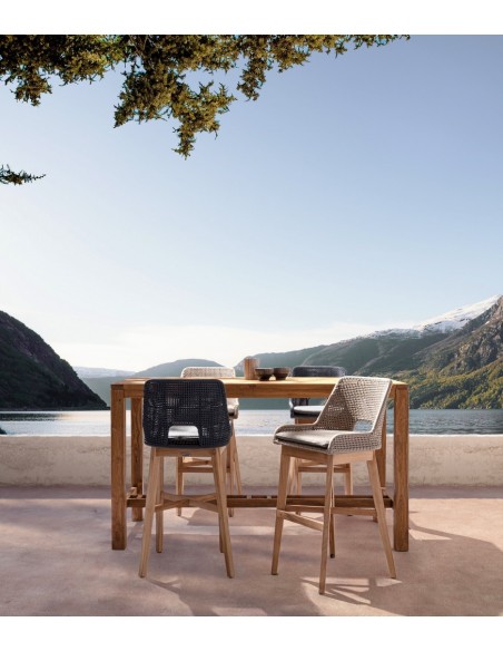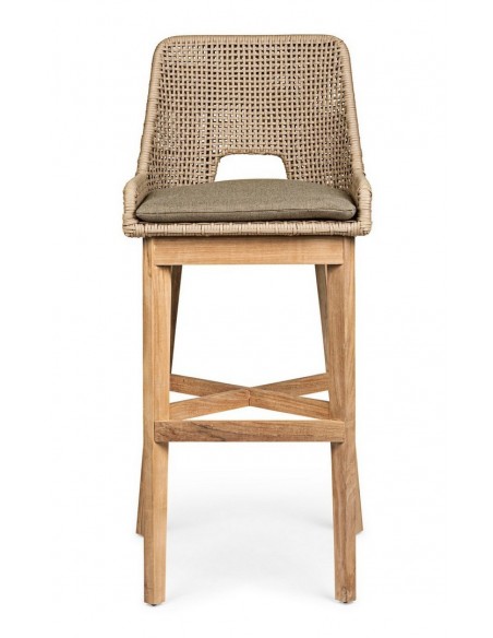 2 x Bar havestole i teaktræ og polypropylene H112 cm - Teak/Taupe