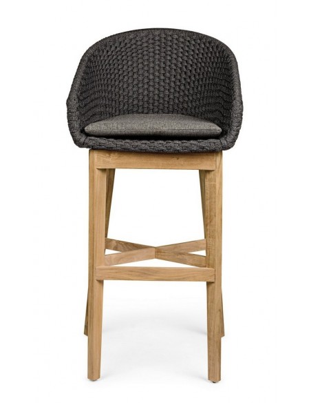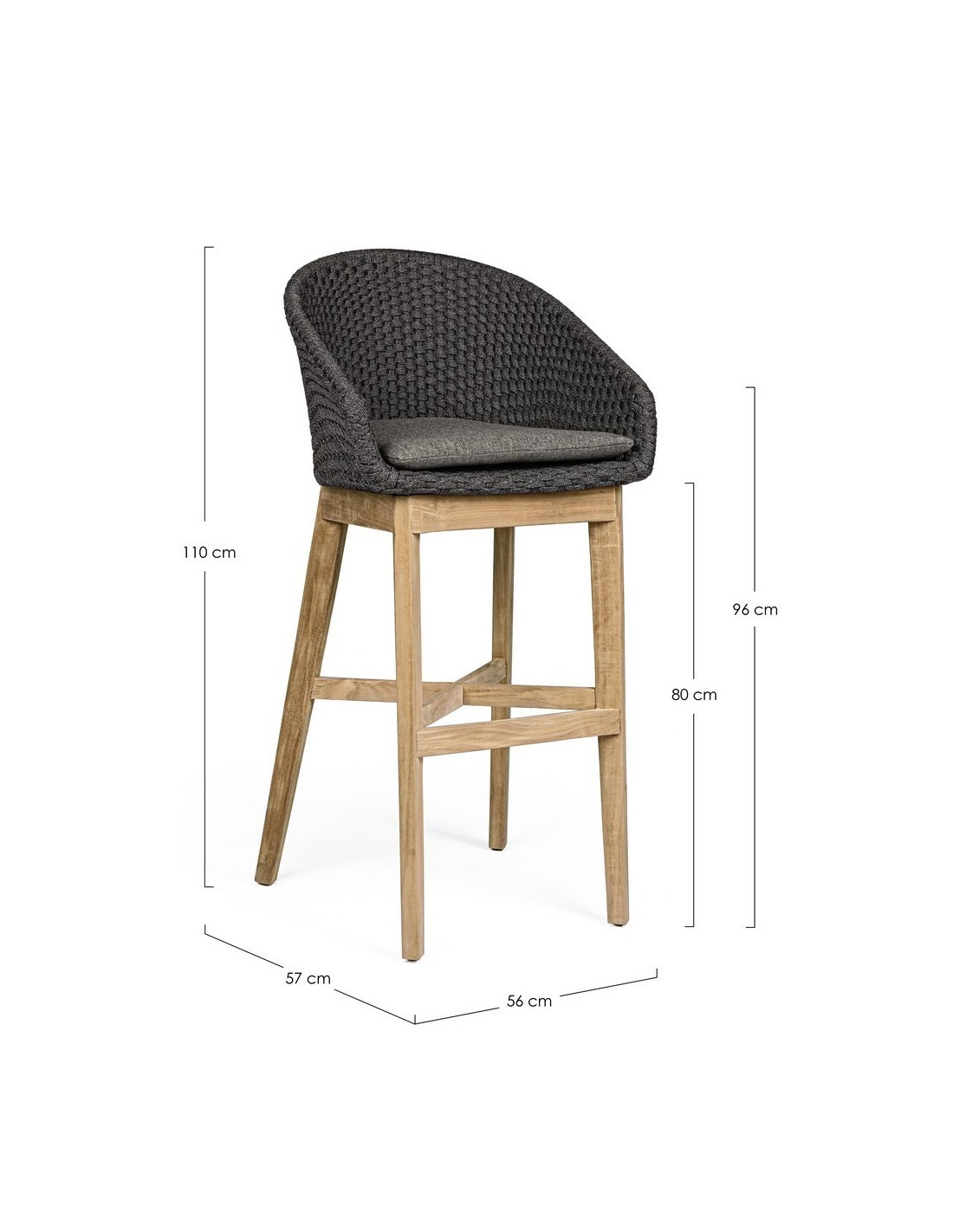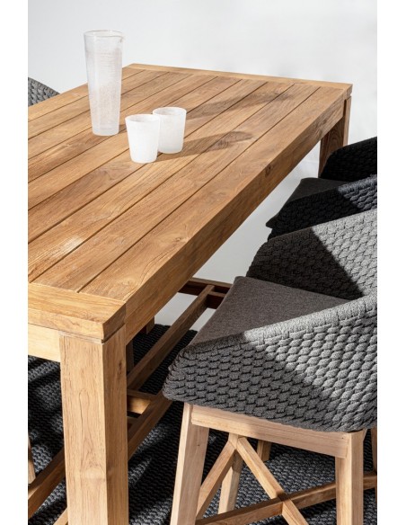 2 x Bar havestole i teaktræ og polypropylene H110 cm - Teak/Charcoal