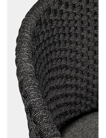 Sæt med 2 bar havestole udført i et design af lakeret teaktræ og ramme i aluminium og med sæde i vandafvisende polypropylene. Stole og hynder er UV-beskyttet med aftageligt betræk på hynderne. Stolene måler 110 cm i højden over ryggen og 56 cm i bredden.