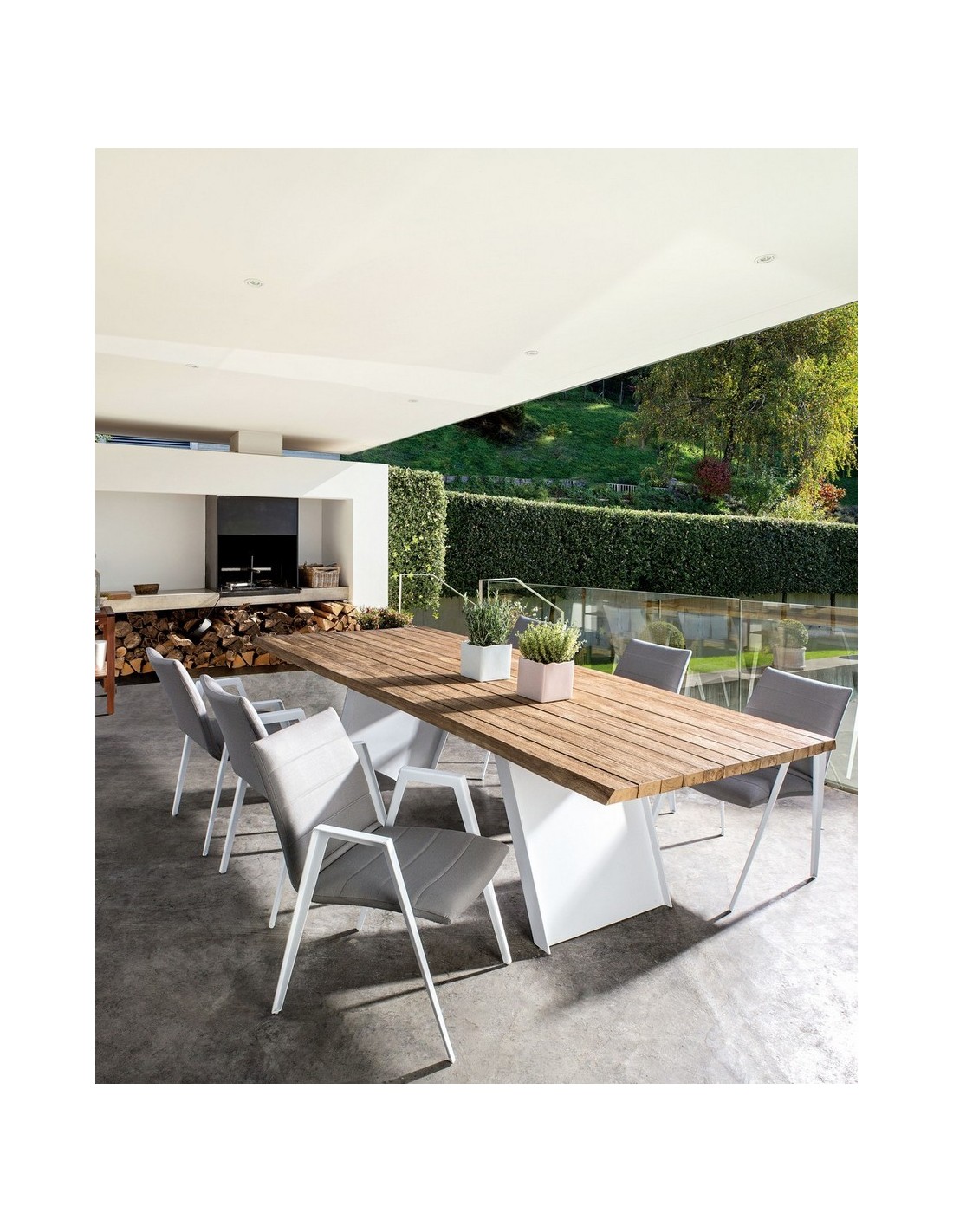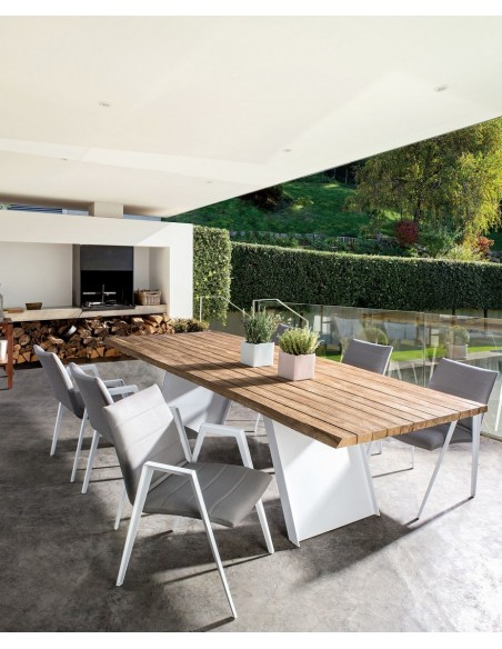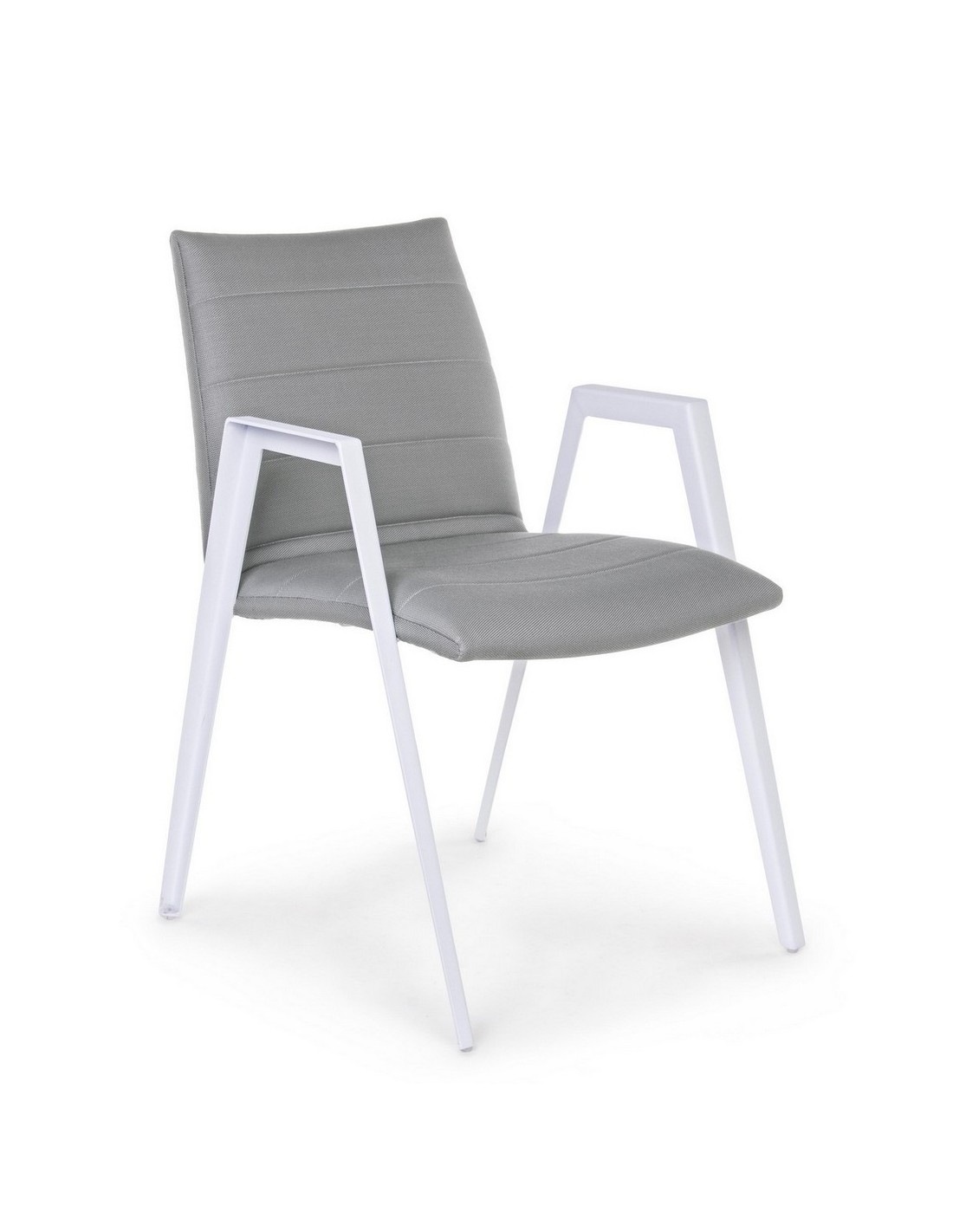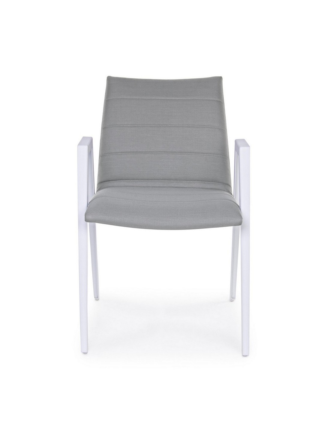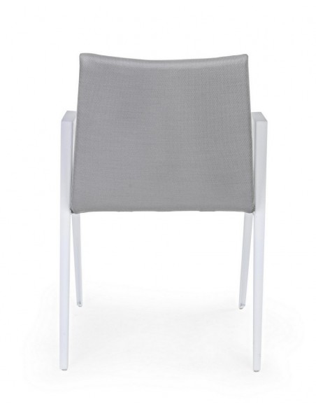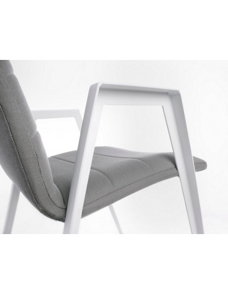Sæt med 2 havestole med armlæn udført i et design af hvid pulverlakeret aluminium og sæde i grå textilene med quick dry foam. Stolen måler 84 cm i højden over ryggen og 57 cm i bredden. Sædet er vandafvisende og UV-beskyttet.