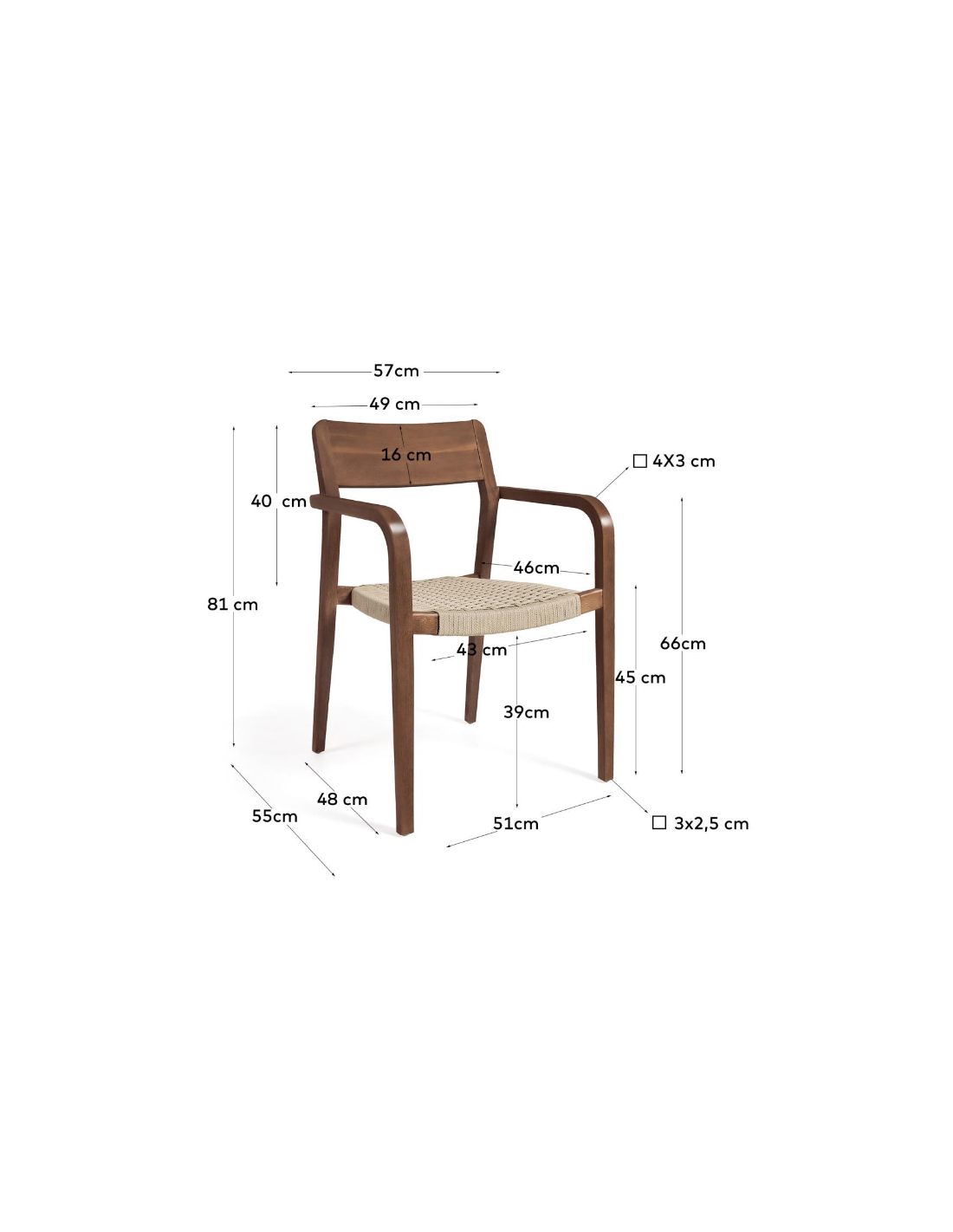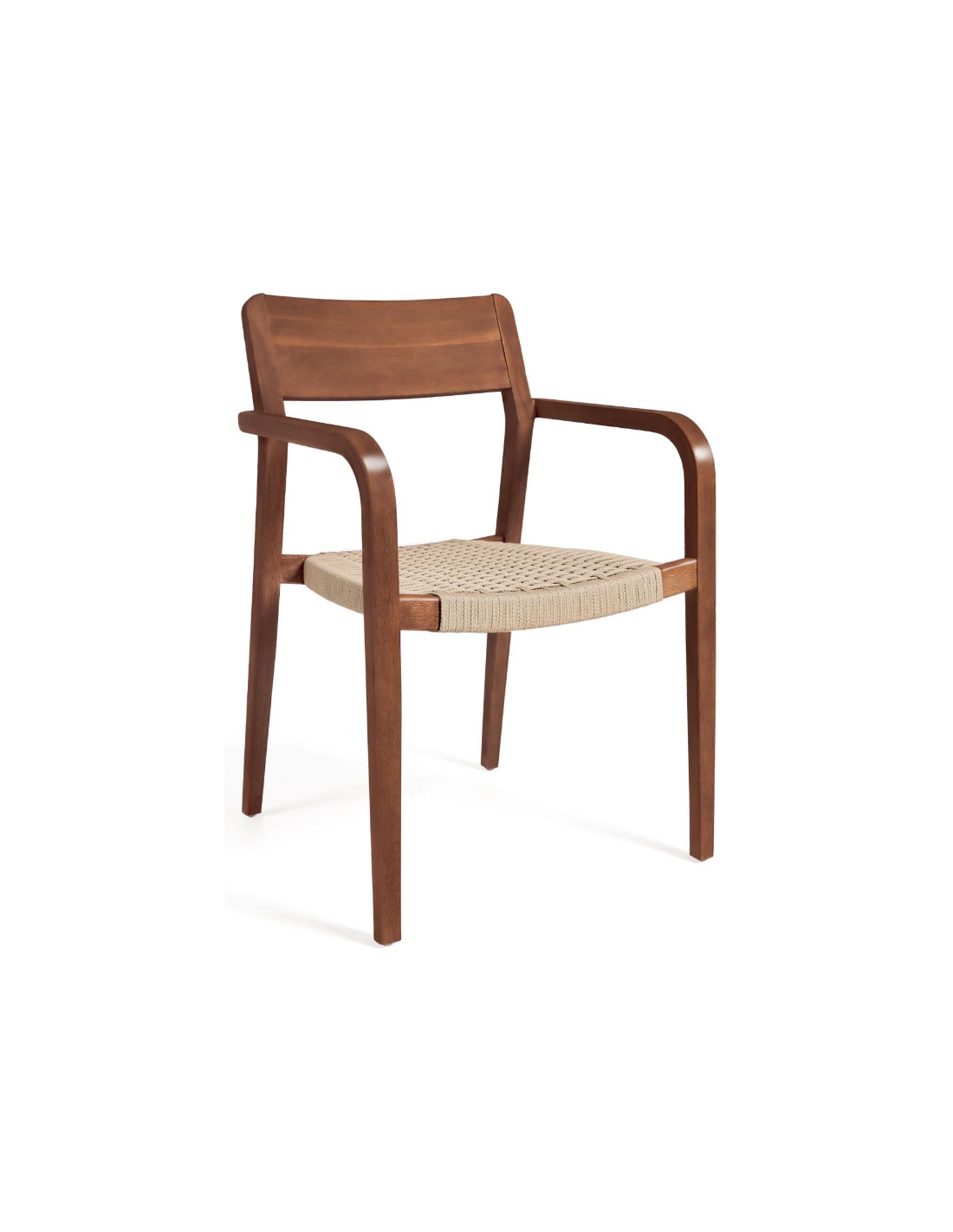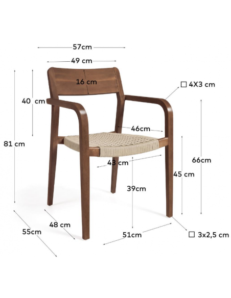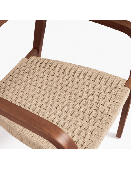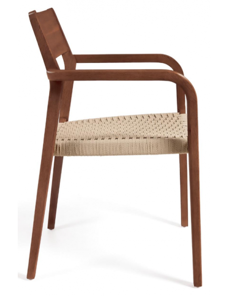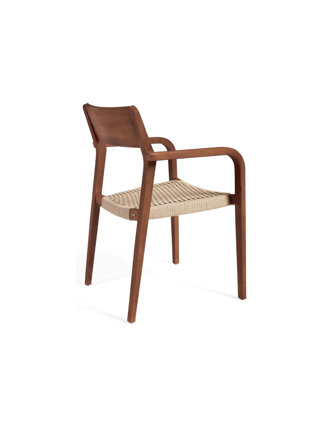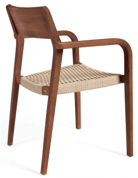 Sæt med 4 havestole i et design fra LaForma. Stolene er fremstillet i valnøddefarvet akacietræ og beige reb. Stolene måler 81 cm i højden over ryggen og 57 x 55 cm i bredde og dybde.