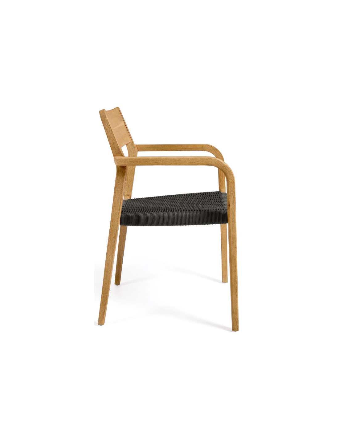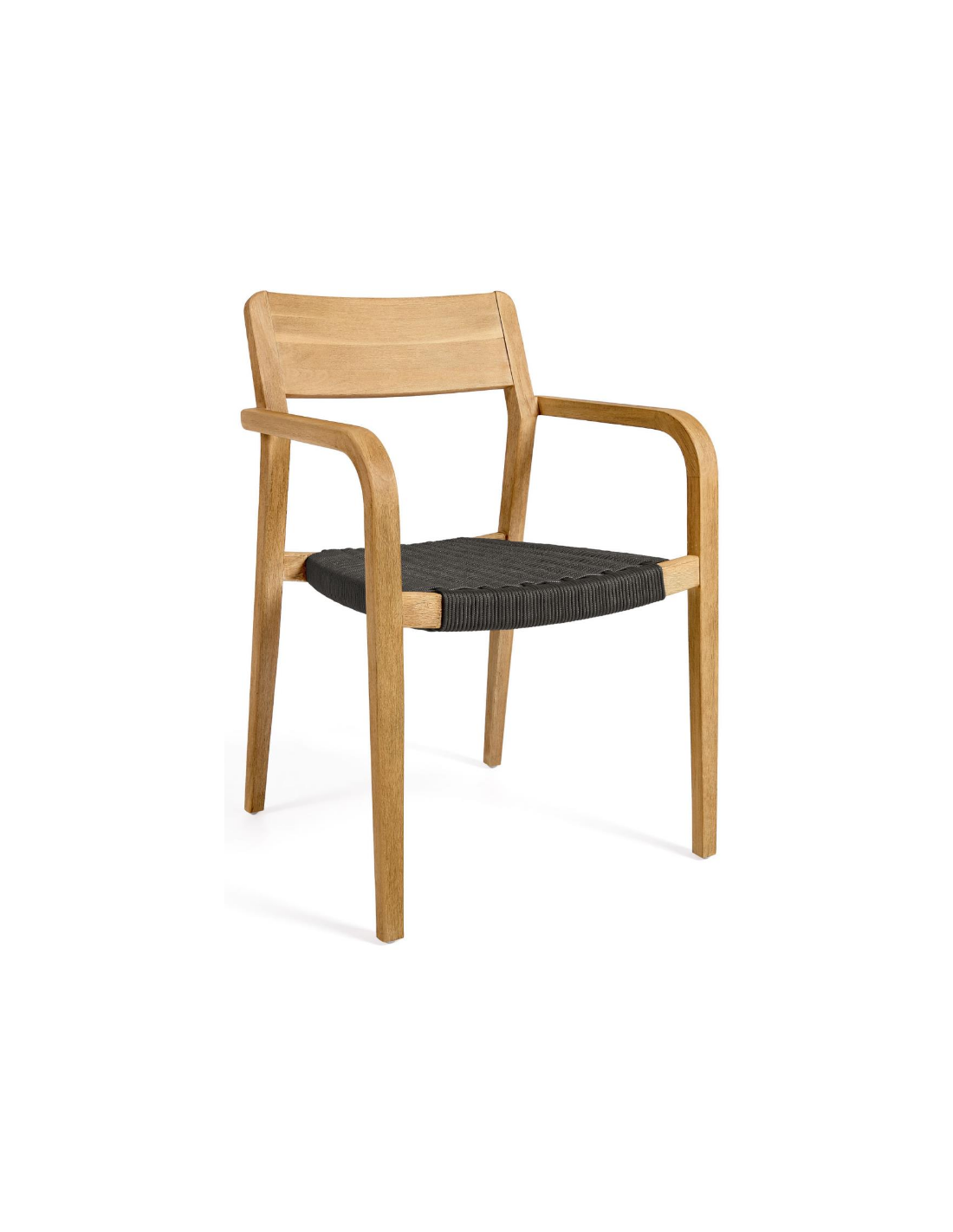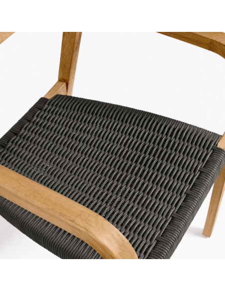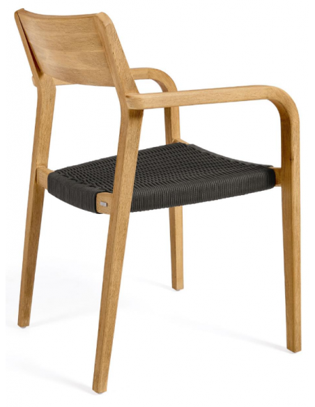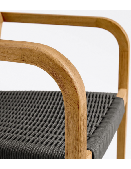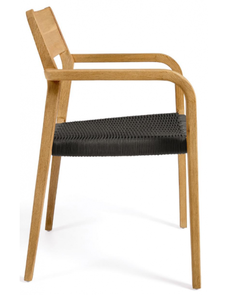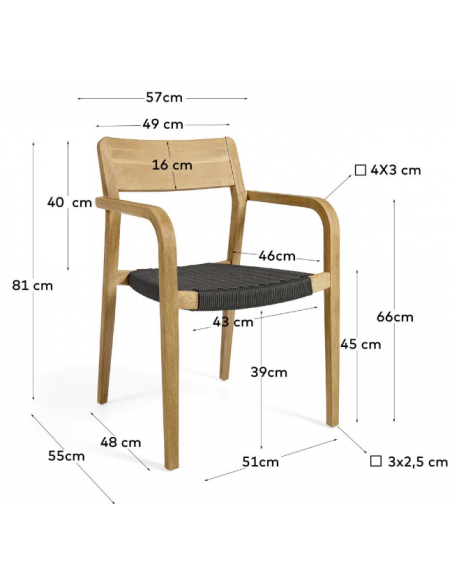 Sæt med 4 havestole i et design fra LaForma. Stolene er fremstillet i akacietræ og sort reb. Stolene måler 81 cm i højden over ryggen og 57 x 55 cm i bredde og dybde.