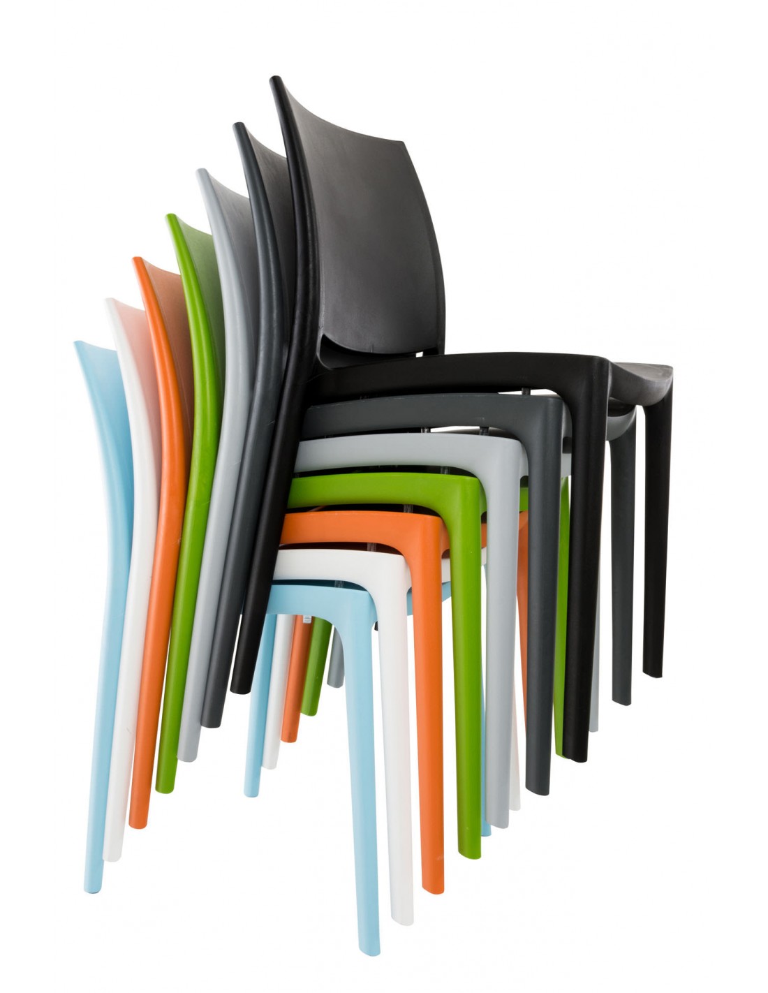 Havestol udført i et design af polypropylene, der er resistent overfor fugt og regn. Stolen måler 81 cm i højden over ryggen og med en siddehøjde på 45 cm.