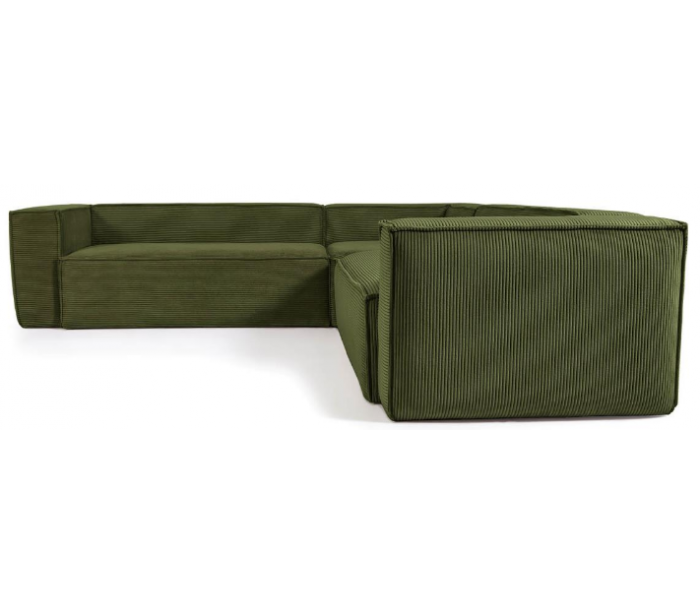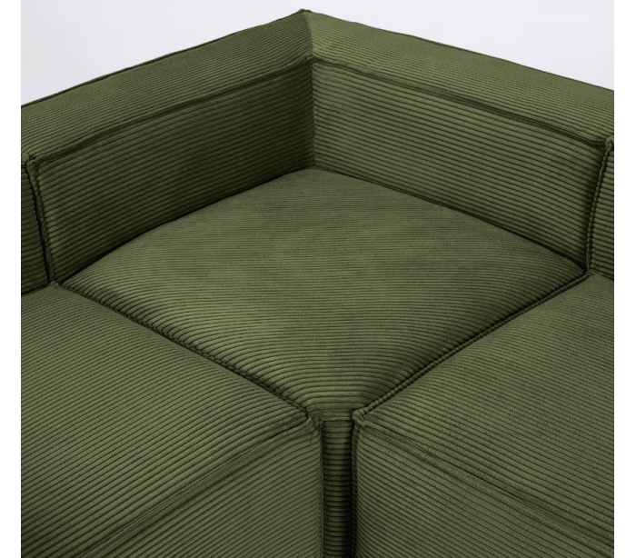 Hjørnesofa udført i et moderne skandinavisk design fra LaForma. Sofaen er fremstillet i grønt ripcurl velour og måler 290 x 290 cm i bredde og dybde. Modulerne forbindes til hinanden via klammer.