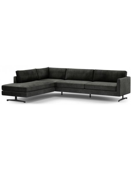 Camille venstrevendt hjørnesofa i velour 311 x 235 cm - Sort/Grågrøn