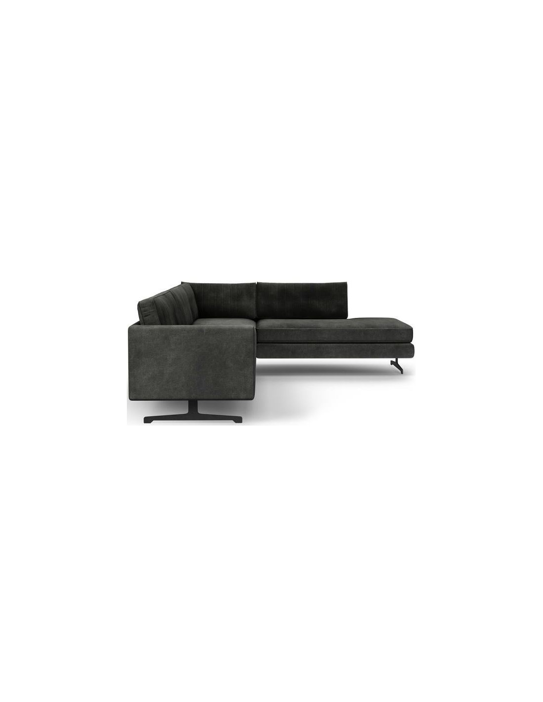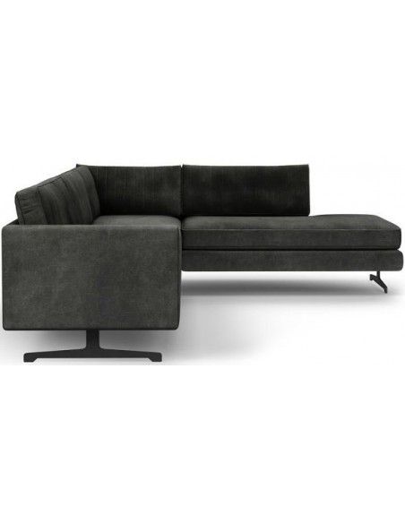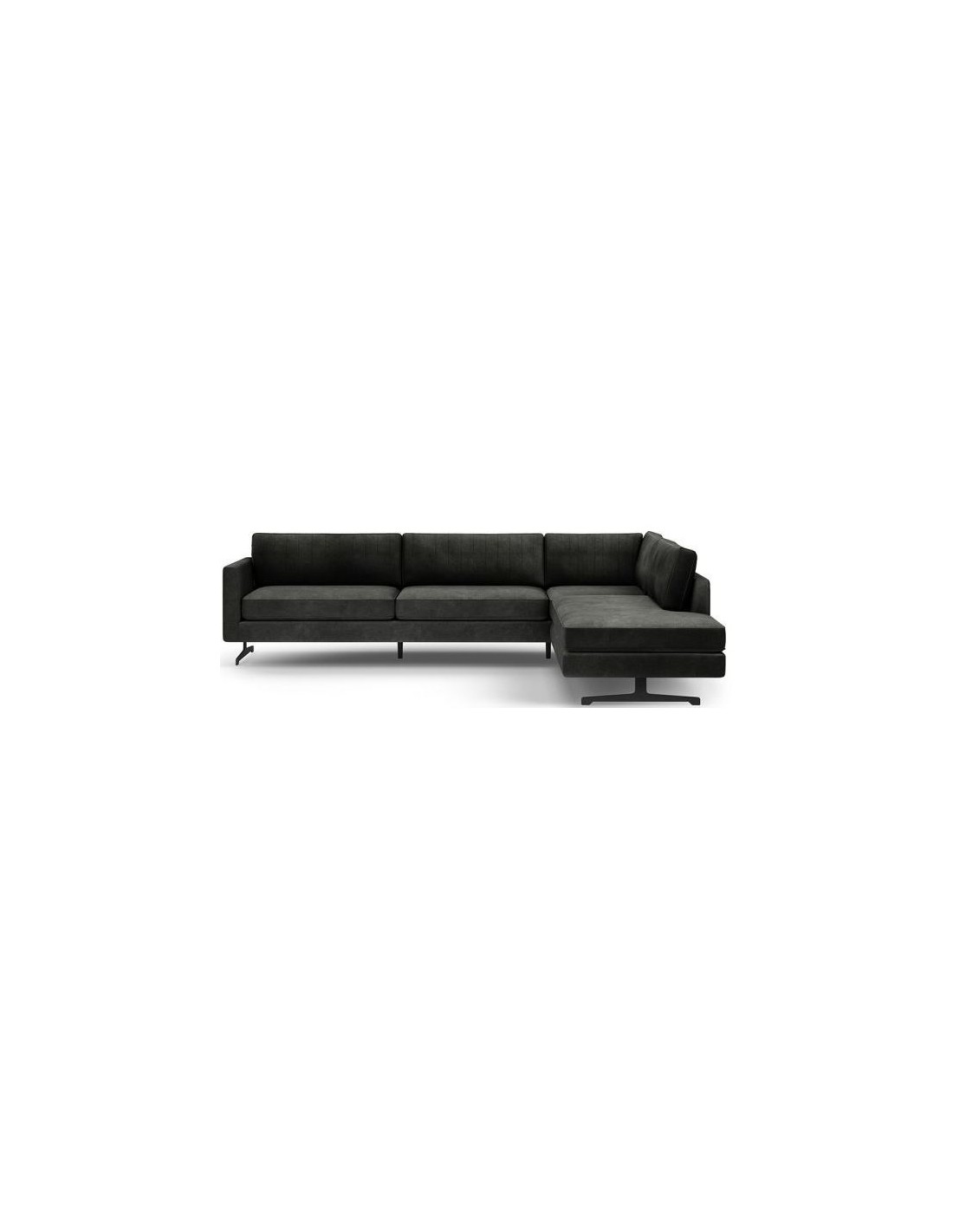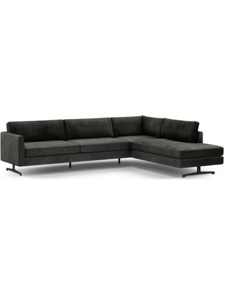Camille højrevendt hjørnesofa i velour 311 x 235 cm - Sort/Grågrøn