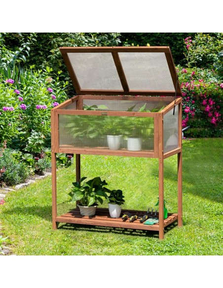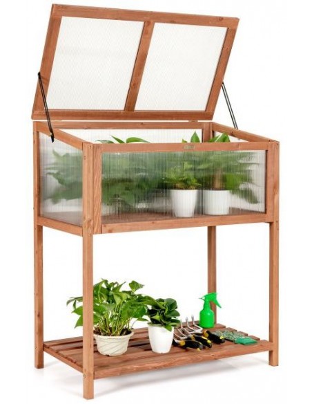 Mini drivhus højbed i fyrretræ og polycarbonat H104,5 cm - Brun