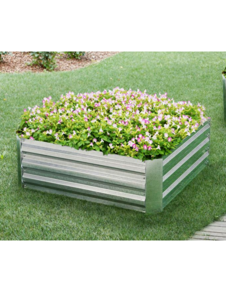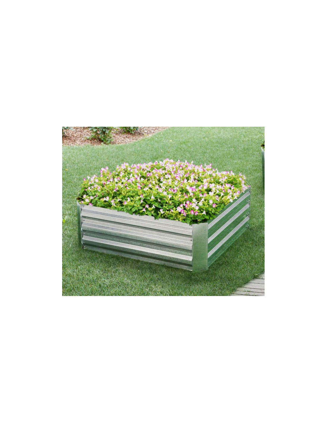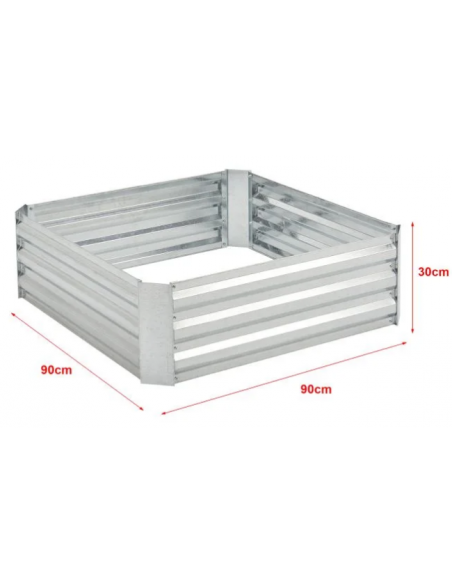 Højbed udført i et design af galvaniseret stål. Højbedet måler 30 cm i højden og 90 x 90 cm i bredde og dybde.