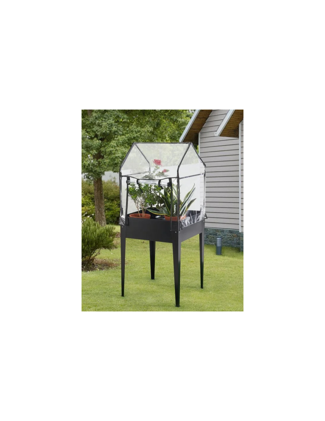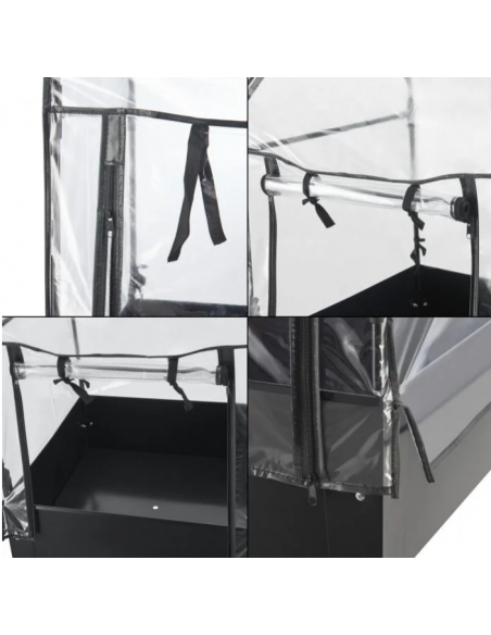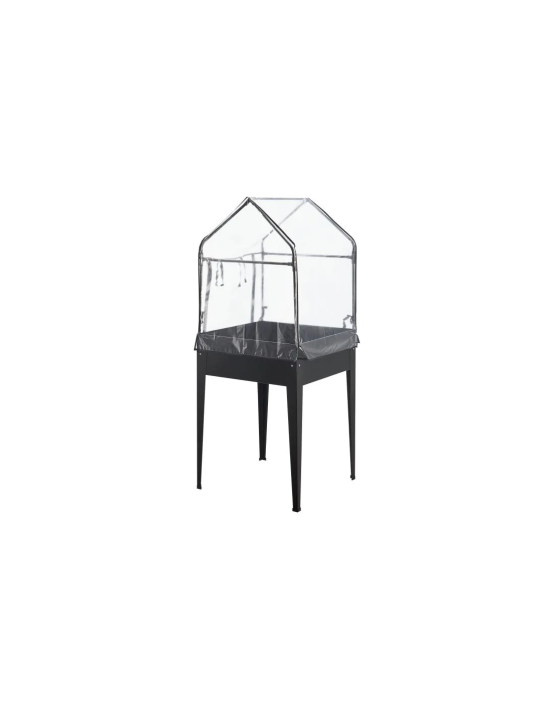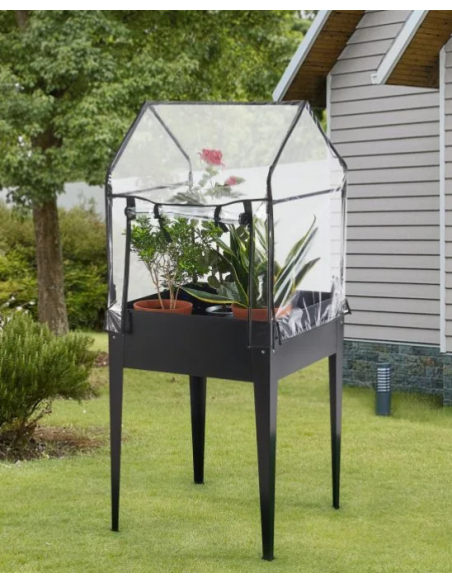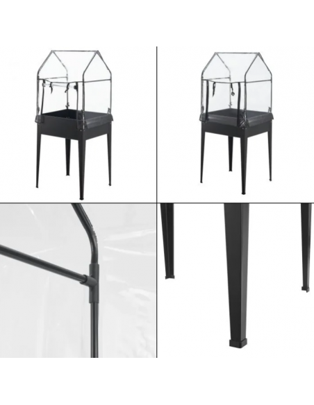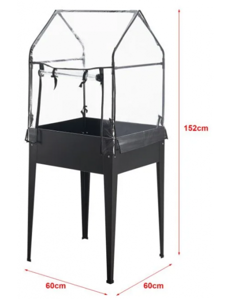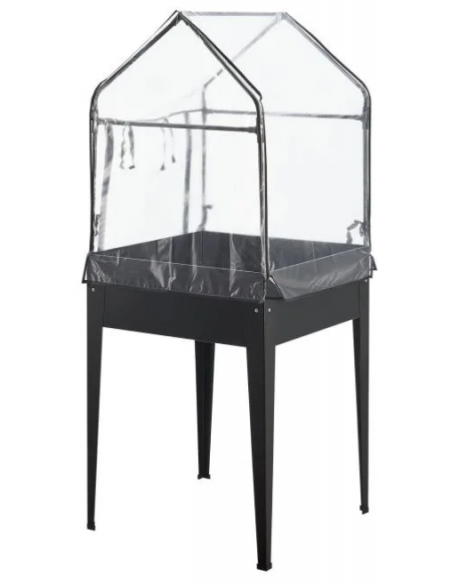 Højbed med minidrivhus, udført i et design af antracitlakeret stål og kunststof. Højbedet måler 82 - 152 cm i højden og 60 x 60 cm i bredde og dybde.