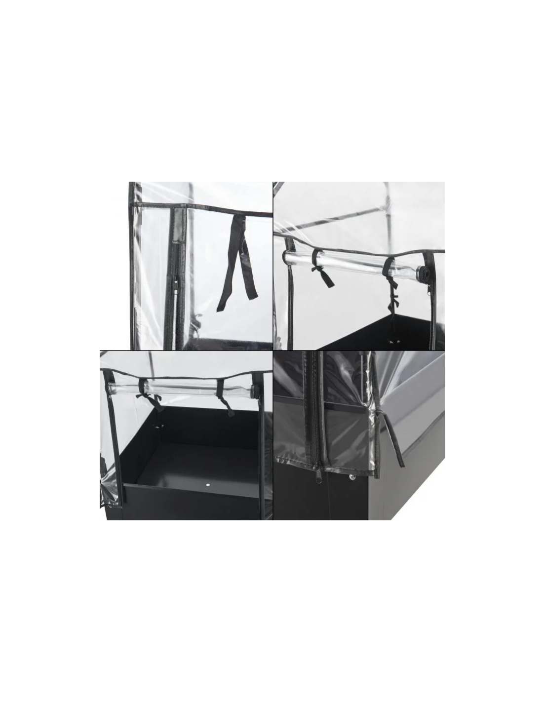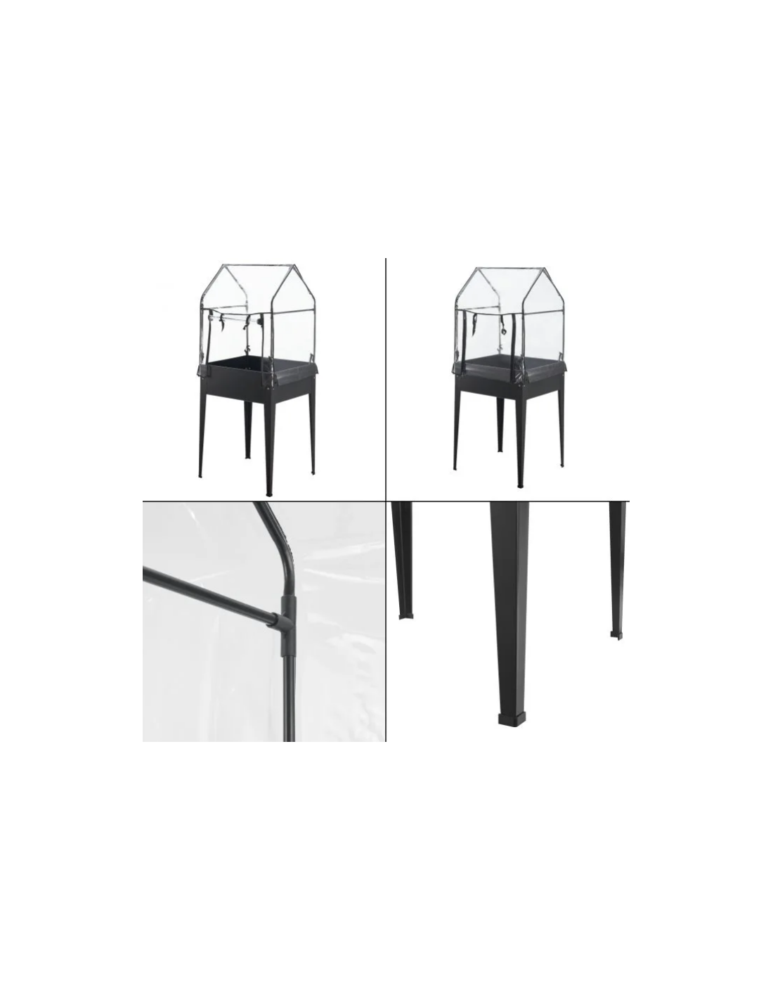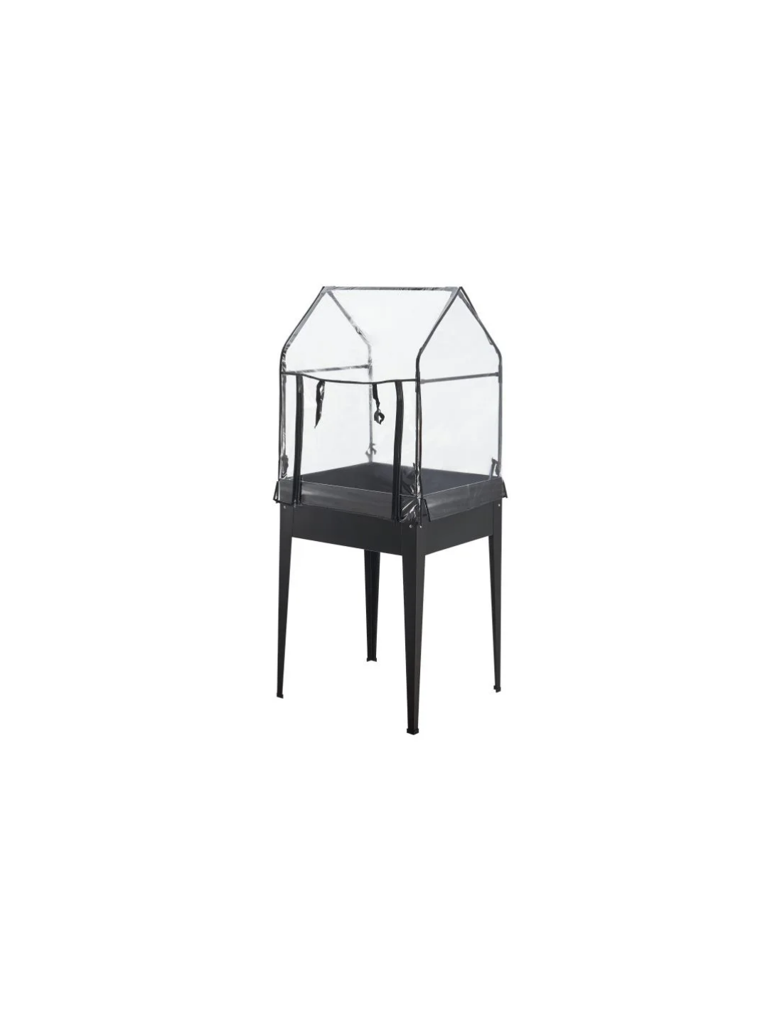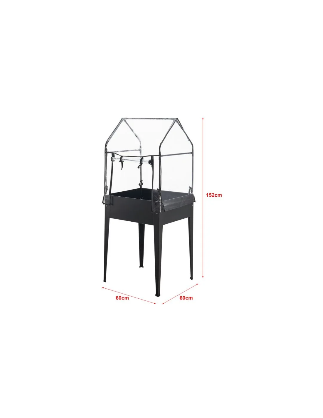 Højbed med minidrivhus, udført i et design af antracitlakeret stål og kunststof. Højbedet måler 82 - 152 cm i højden og 60 x 60 cm i bredde og dybde.