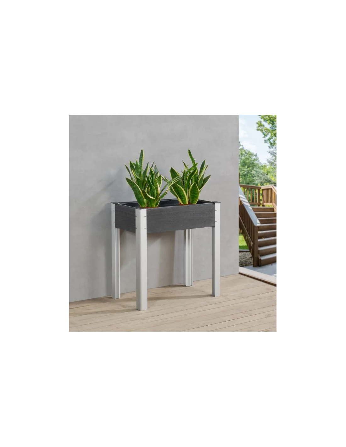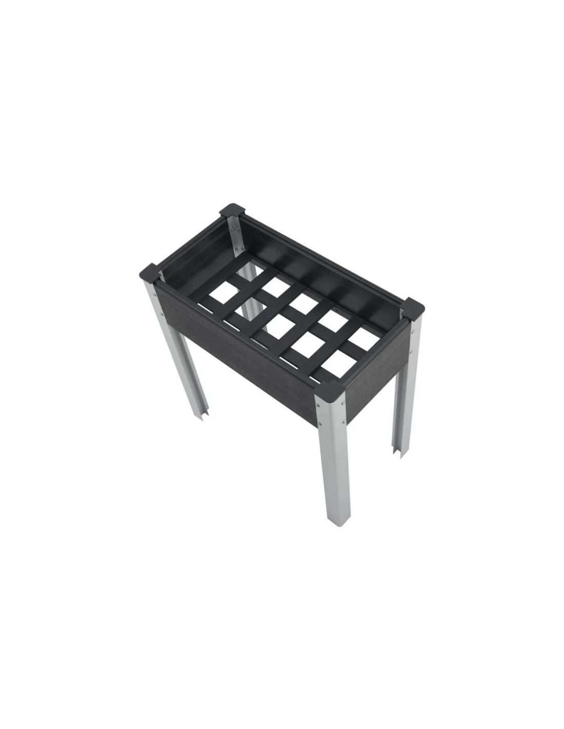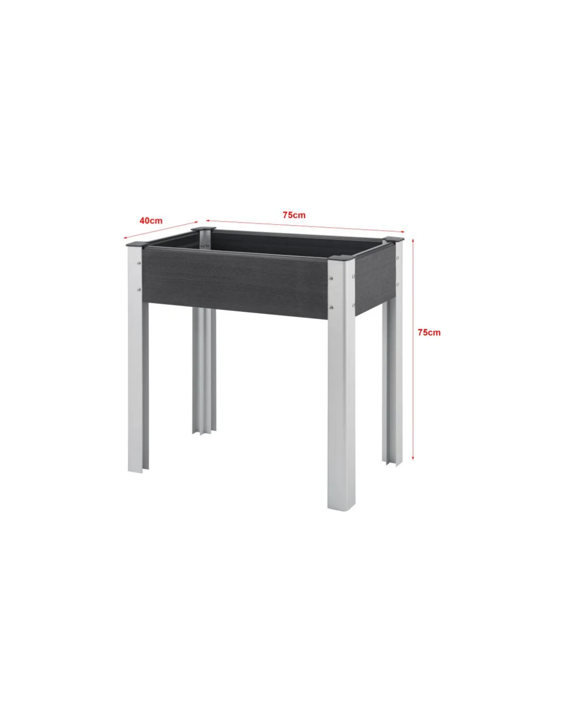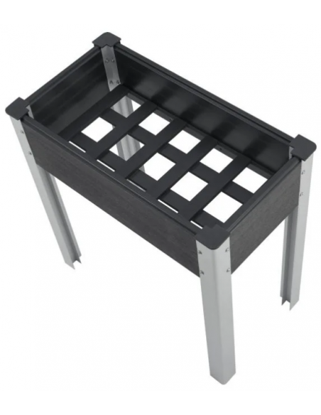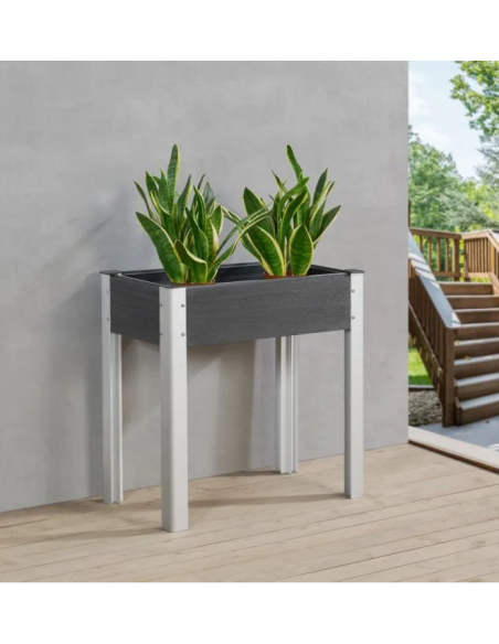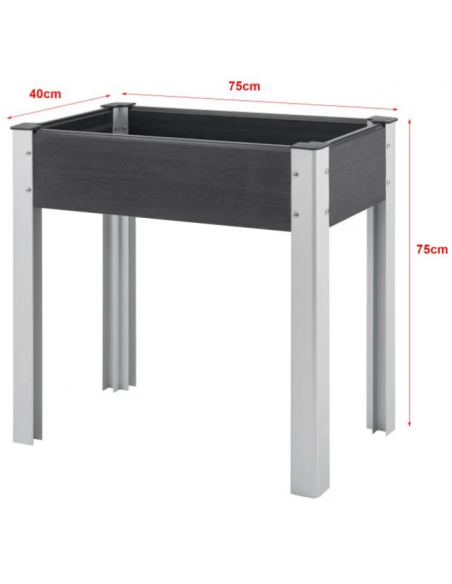 Højbed udført i et design af aluminium og komposit. Højbedet måler 75 cm i højden og 75 x 40 cm i bredde og dybde.