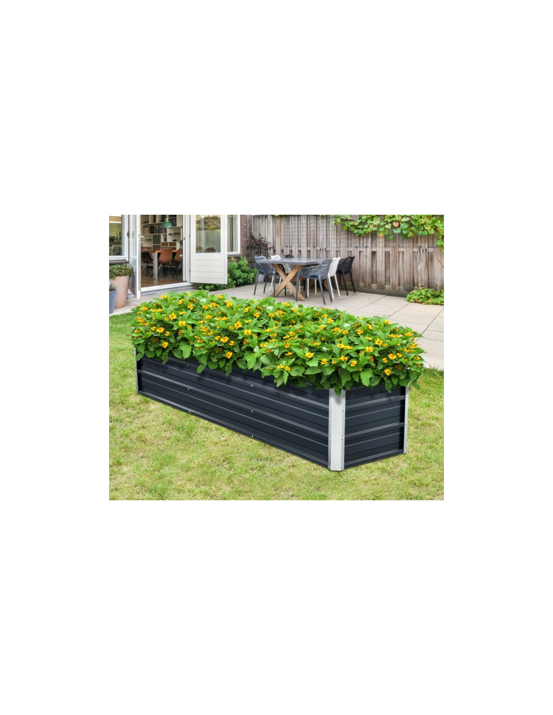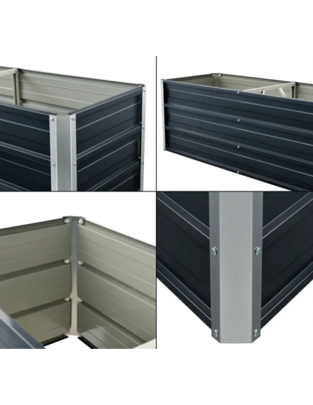 Højbed udført i et design af stål. Højbedet måler 40 cm i højden og 183 x 47 cm i bredde og dybde.