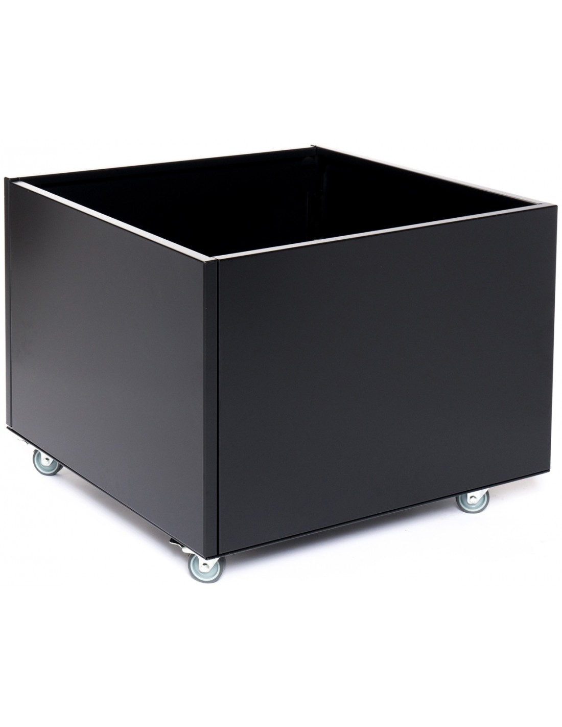 Moderne højbed med bund og hjul med lås, udført i et design af mat sort pulverlakeret aluminium, der vil give et flot præg på terrasse eller i have. Højbedet måler 40 cm i højden og 60 x 60 cm i længde og bredde.