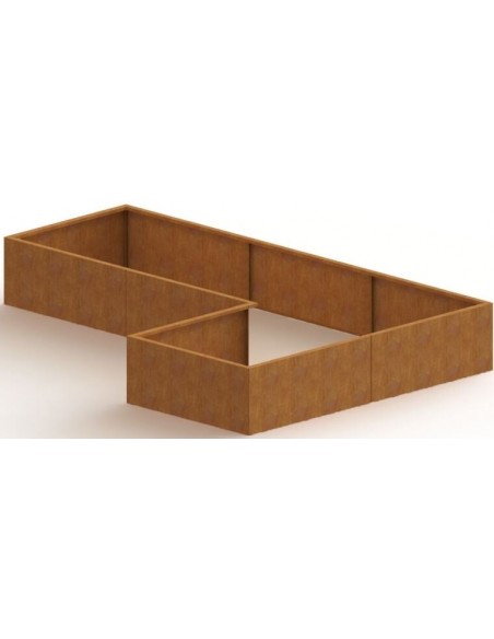 Højbed udført i et smukt design af stål. Højbedet er med bund og måler 80 cm i højden og 300 x 100/200 cm i bredde og dybde.