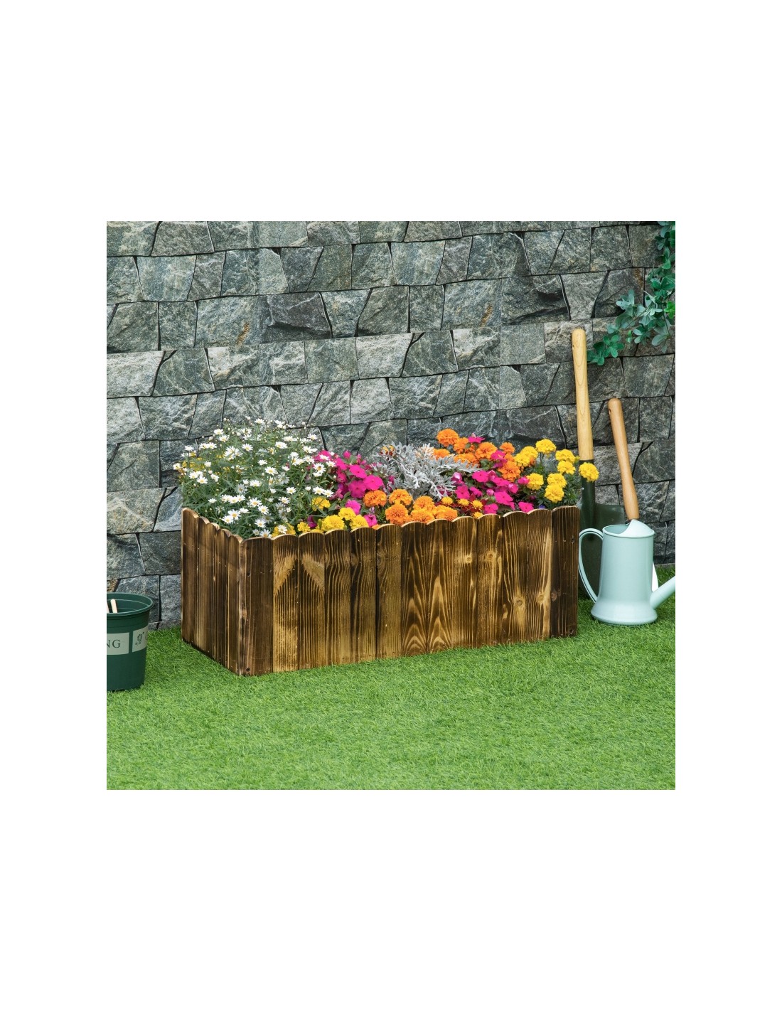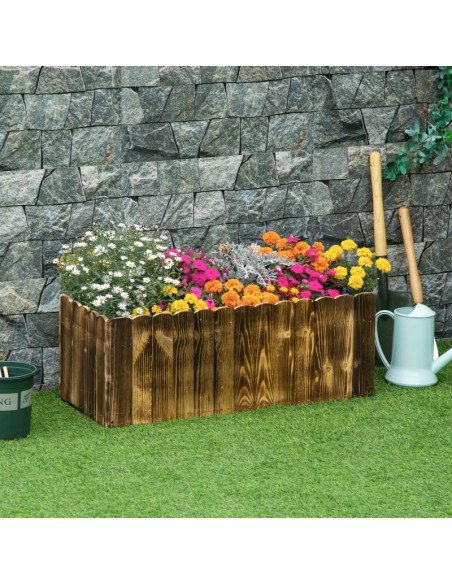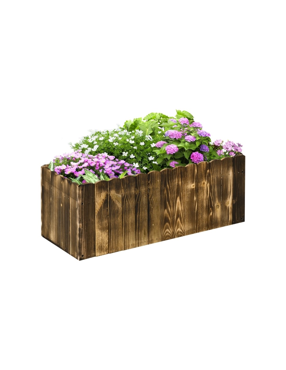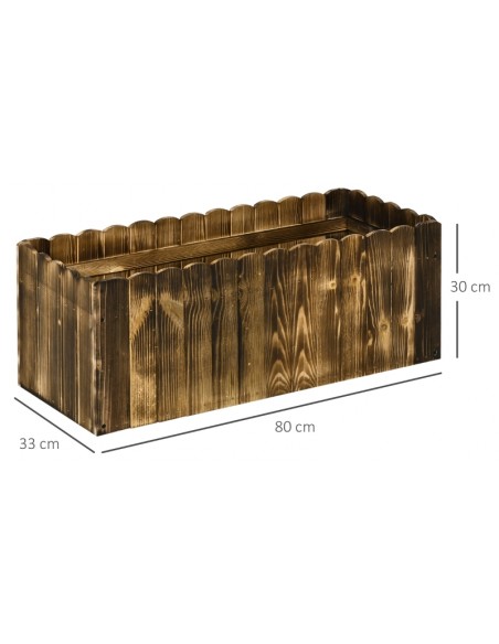 Højbed udført i et design af brændt fyrretræ. Højbedet måler 80 x 33 cm i bredde og dybde og 30 cm i højden. Højbedet er med bund.