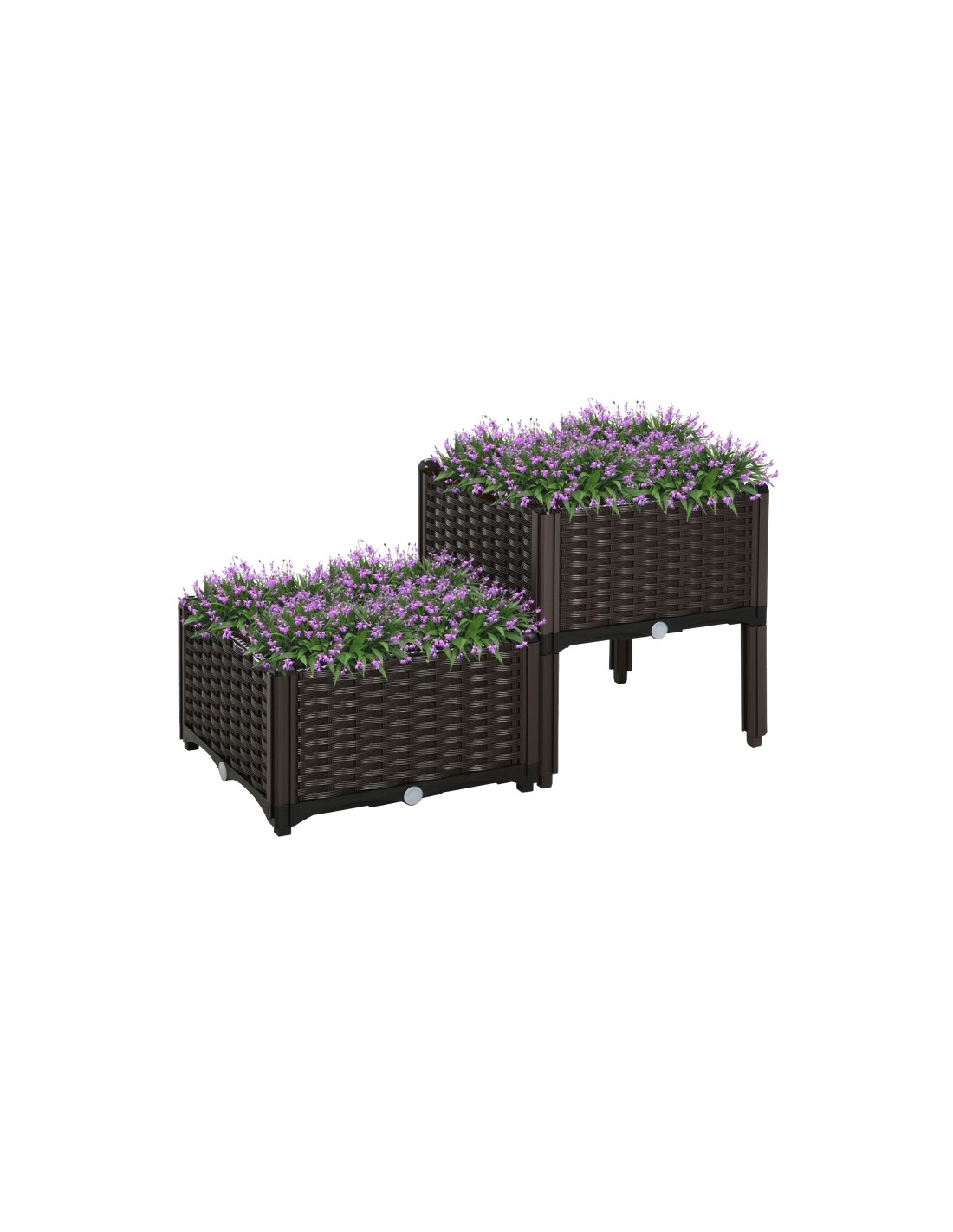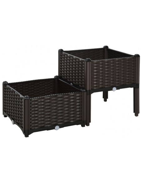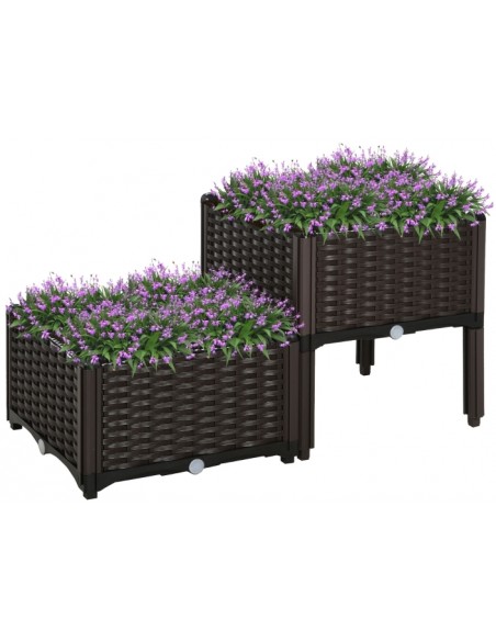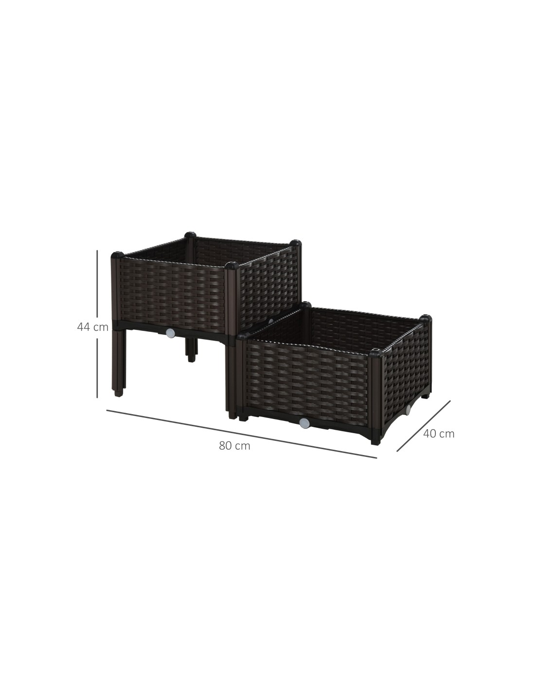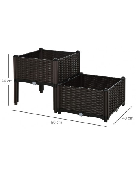 Højbed udført i et design af brunt kunststof. Højbedet måler 80 x 40 cm i bredde og dybde og 44 cm i højden. Højbedet er med selvvandende bund og med dræn.