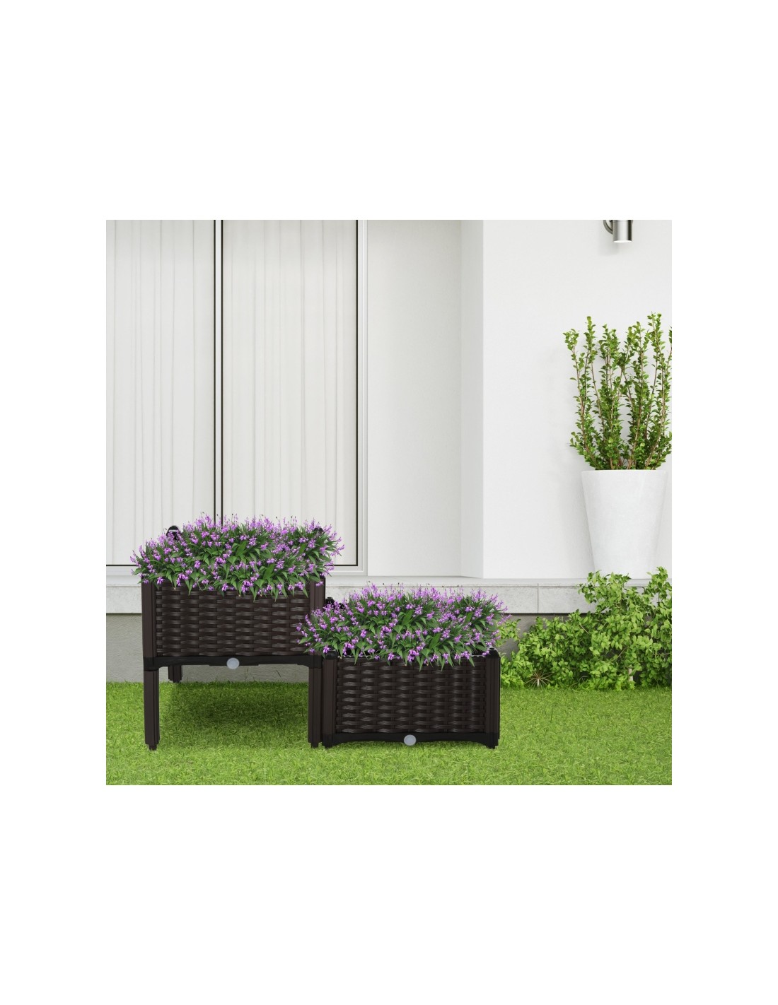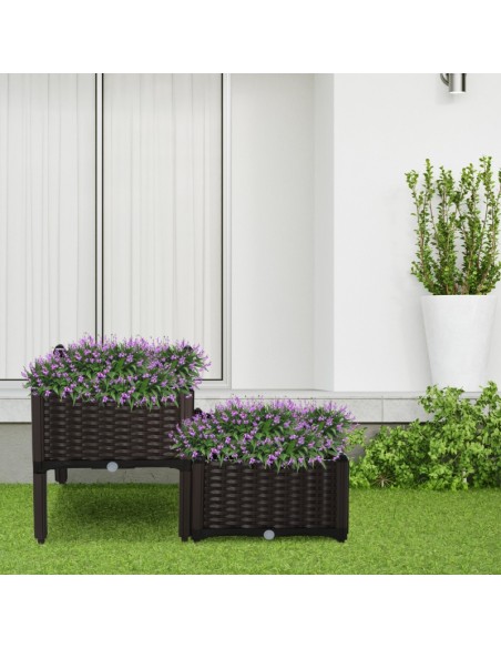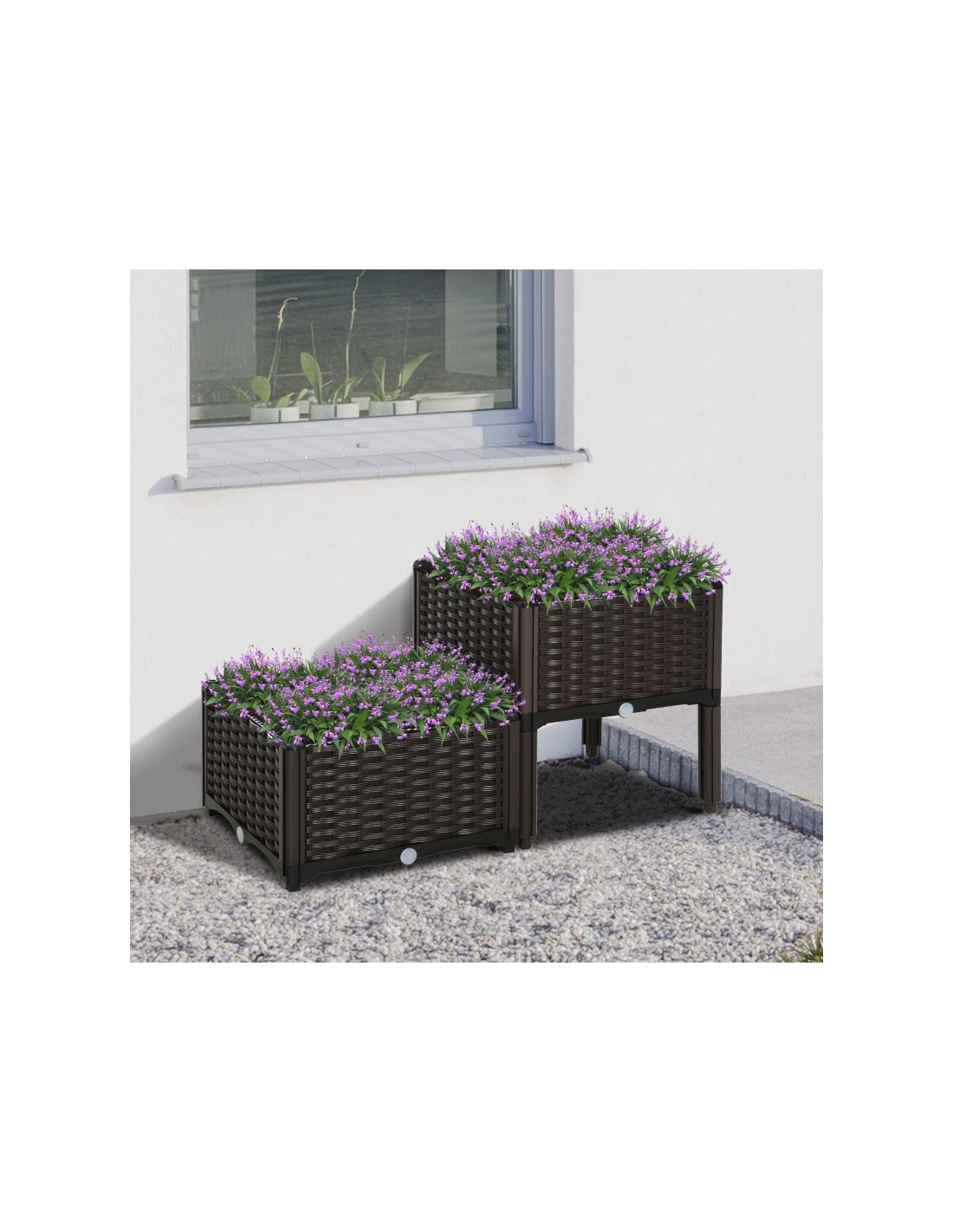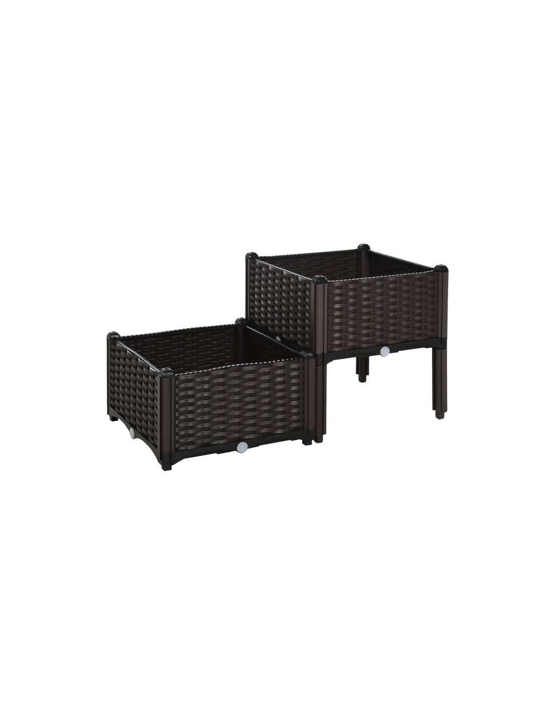 Højbed udført i et design af brunt kunststof. Højbedet måler 80 x 40 cm i bredde og dybde og 44 cm i højden. Højbedet er med selvvandende bund og med dræn.