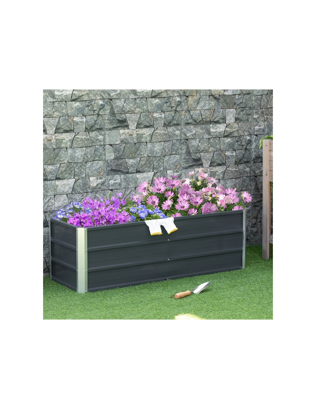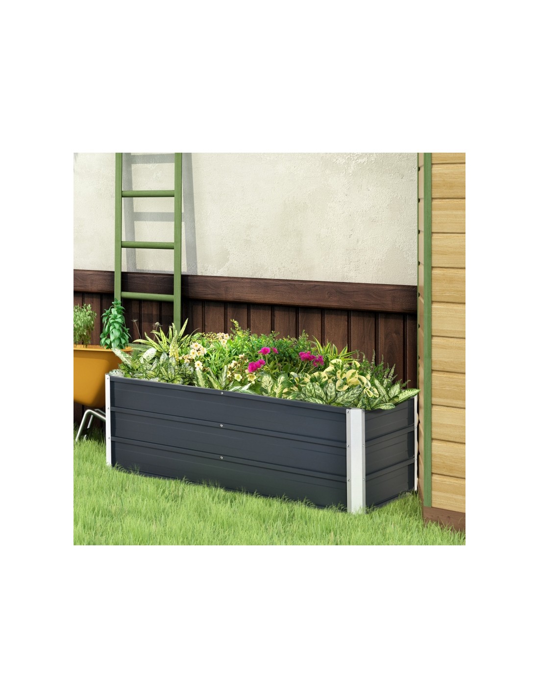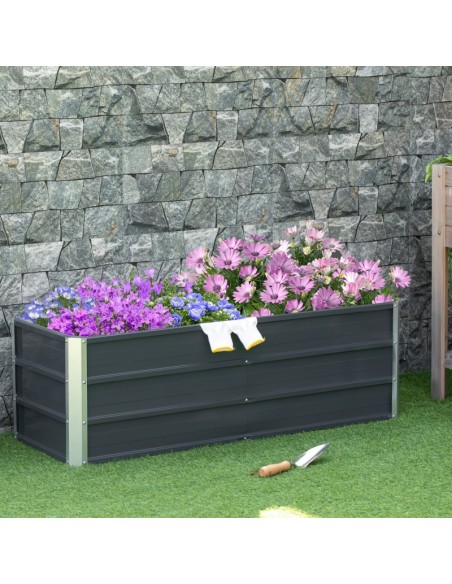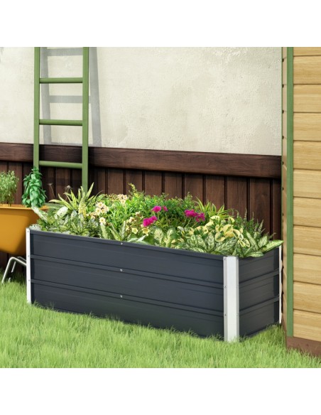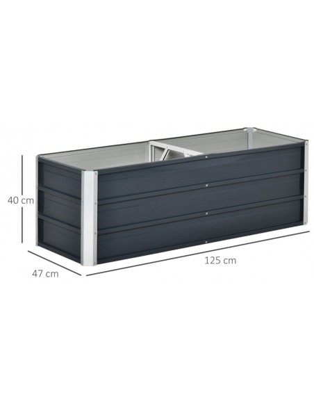 Højbed udført i et design af stål. Højbedet måler 125 x 47 cm i bredde og dybde og 40 cm i højden. Højbedet er uden bund.