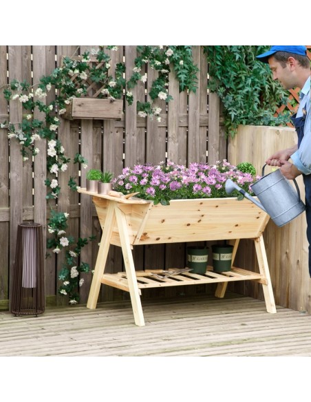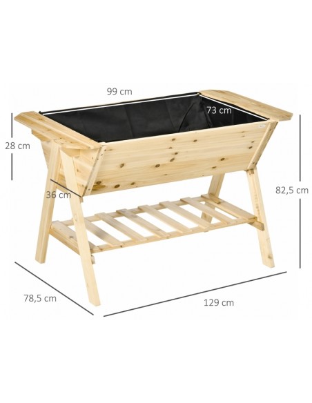 Højbed i fyrretræ og filt B129 x D78,5 x H82,5 cm - Natur