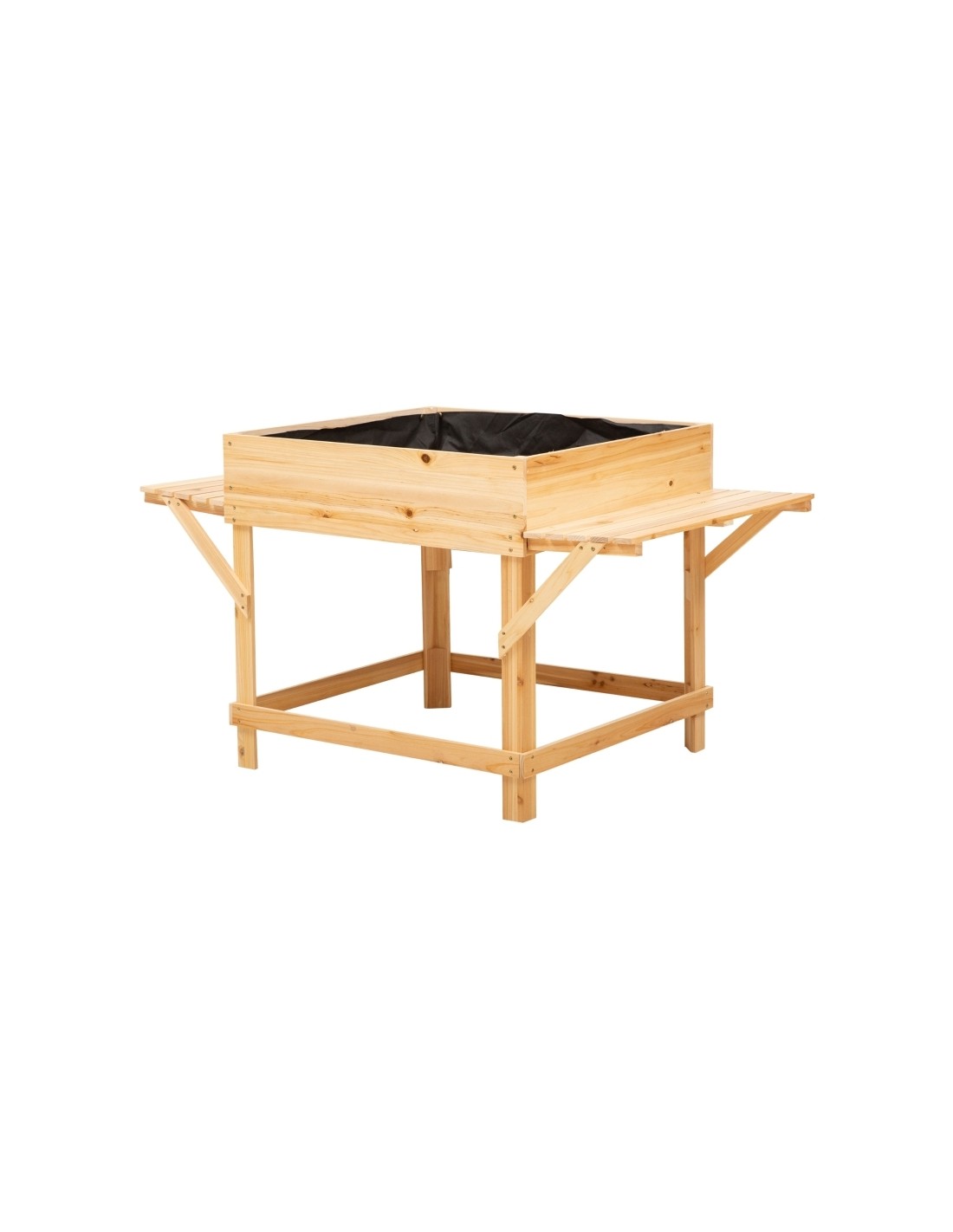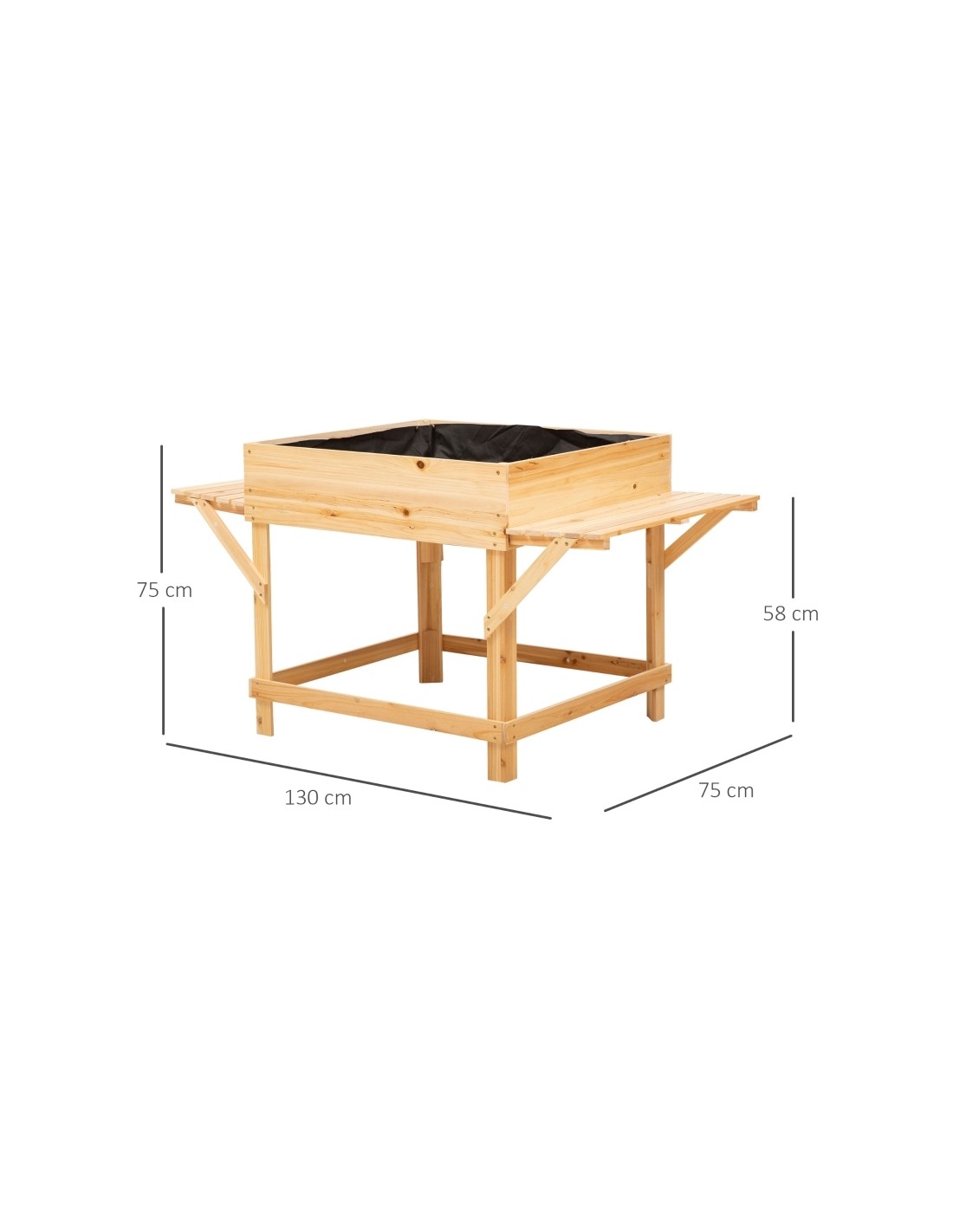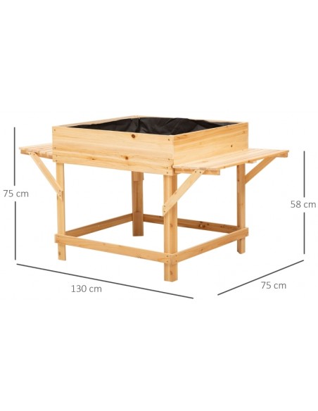 Højbed udført i et design af fyrretræ og filt. Højbedet måler 130 x 75 cm i bredde og dybde og 75 cm i højden.