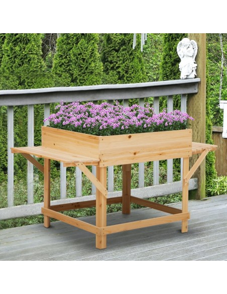 Højbed i fyrretræ og filt B130 x D75 x H75 cm - Natur