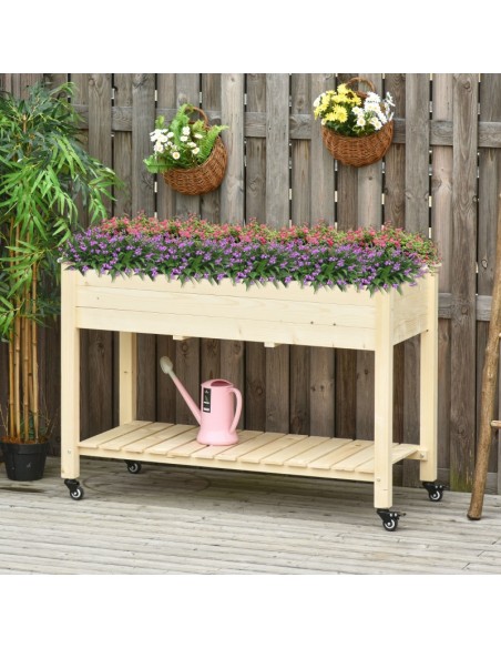 Højbed på hjul i fyrretræ og filt B118 x D55 x H83 cm - Natur