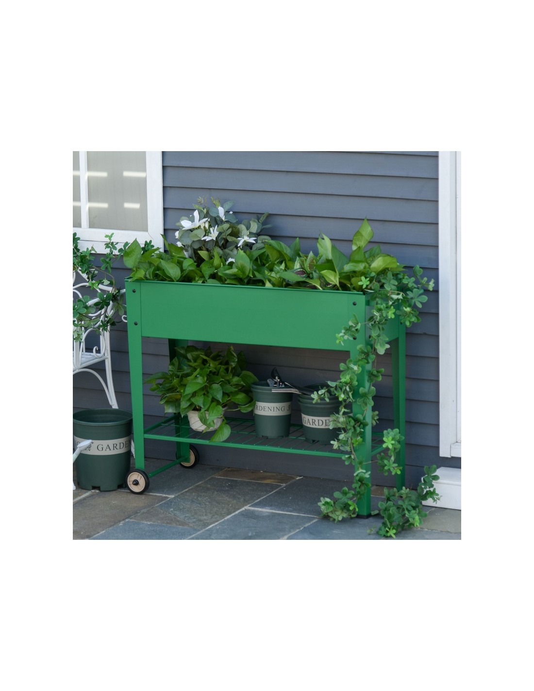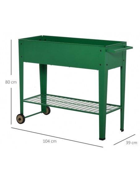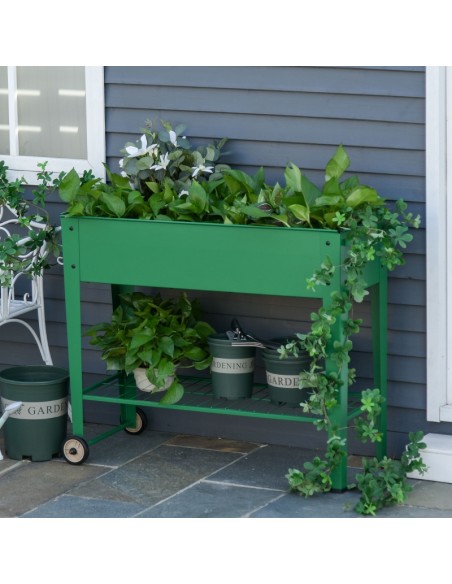 Højbed på hjul i metal B104 x D39 x H80 cm - Grøn