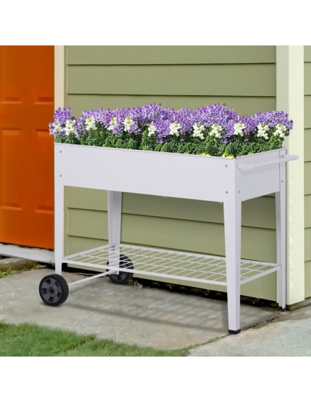 Højbed på hjul i metal B107,5 x D50 x H80 cm - Hvid