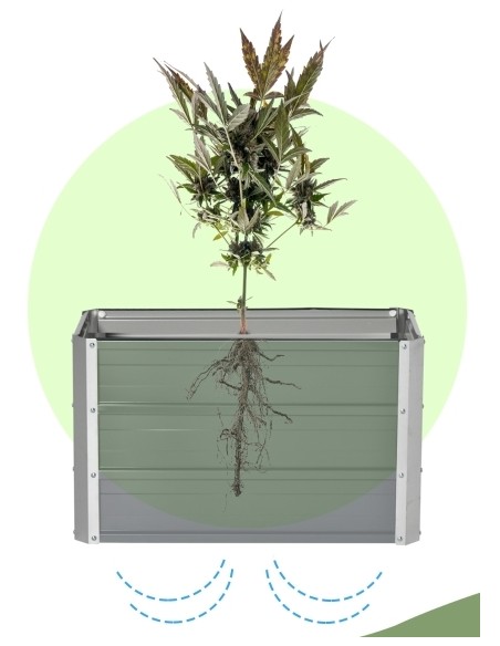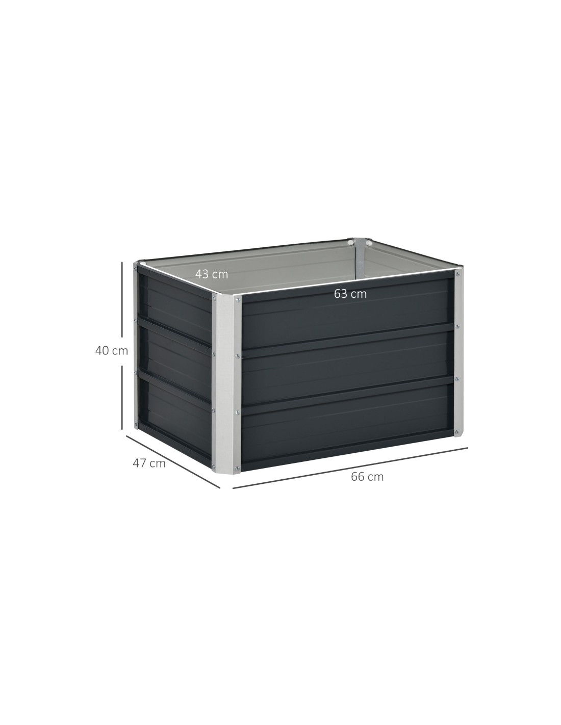 Højbed udført i et design af stål. Højbedet måler 66 x 47 cm i bredde og dybde og 40 cm i højden. Højbedet er uden bund.