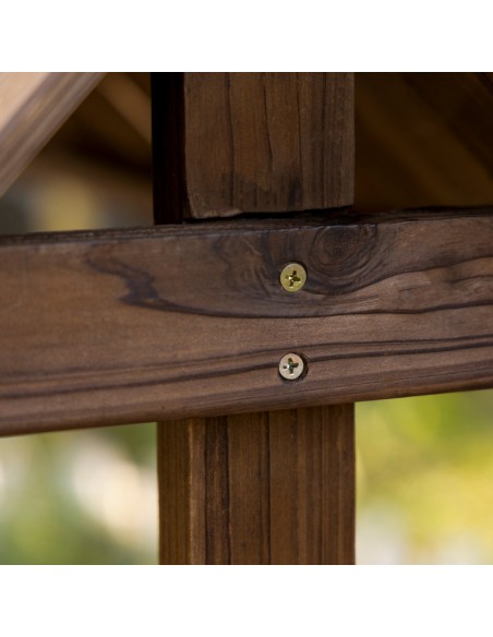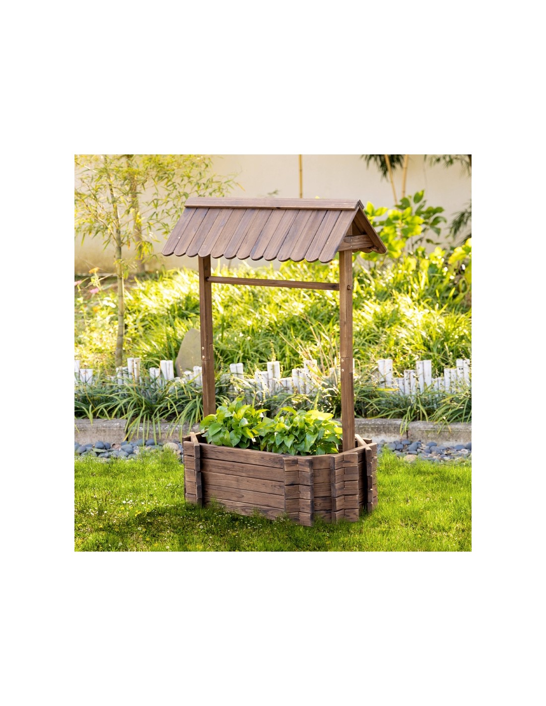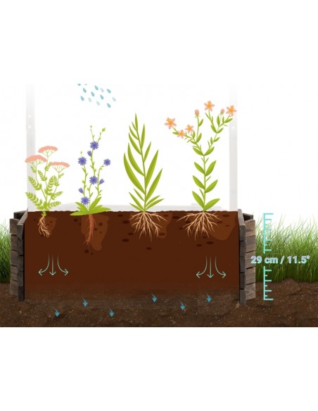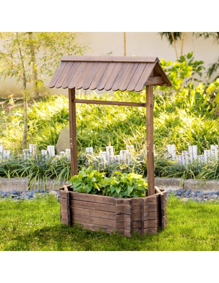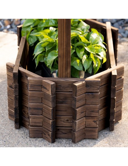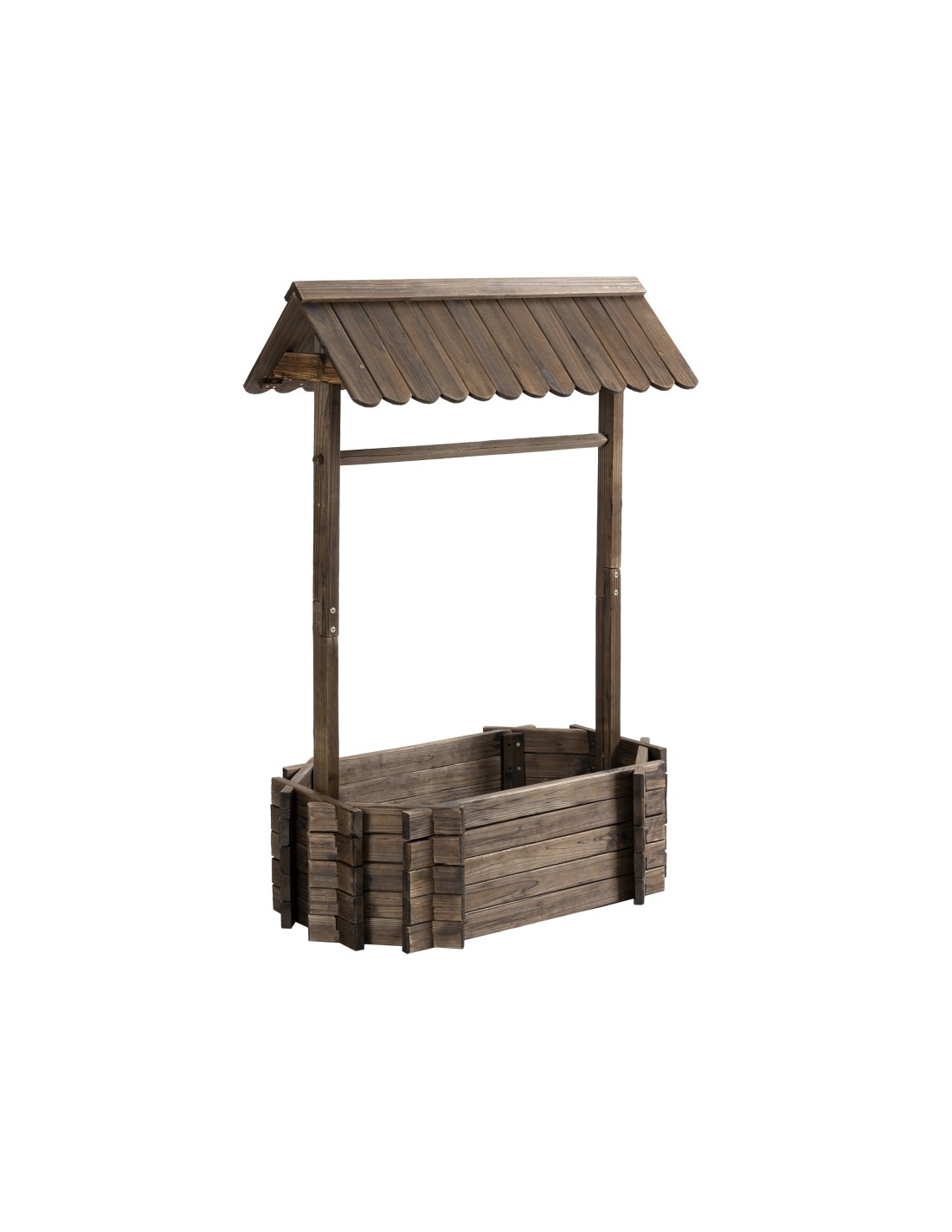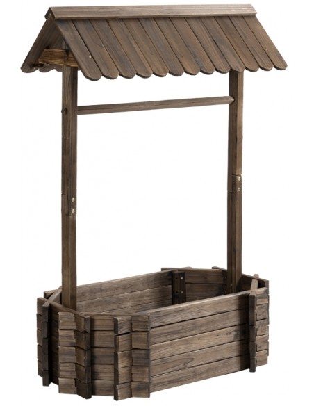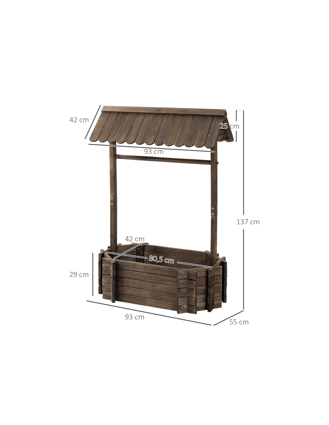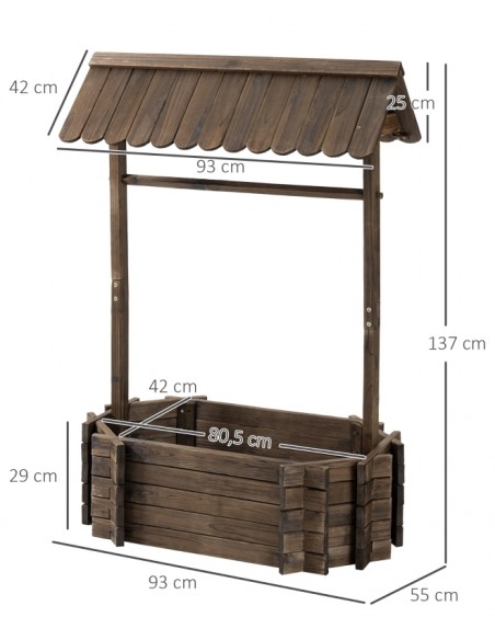 Højbed udført i et design af brunbejset fyrretræ. Højbedet måler 93 x 55 cm i bredde og dybde og 137 cm i højden. Højbedet er uden bund.