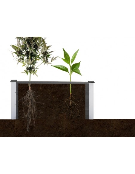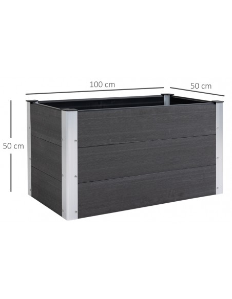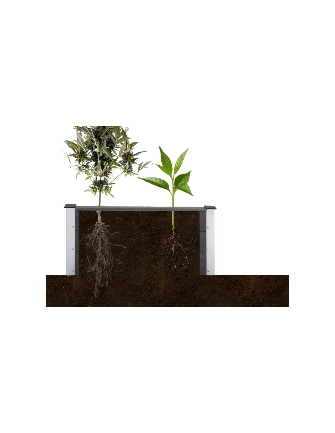 Højbed udført i et design af aluminium og vedligeholdelsesfrit WPC komposit. Højbedet måler 100 x 50 cm i bredde og dybde og 50 cm i højden. Højbedet er uden bund.