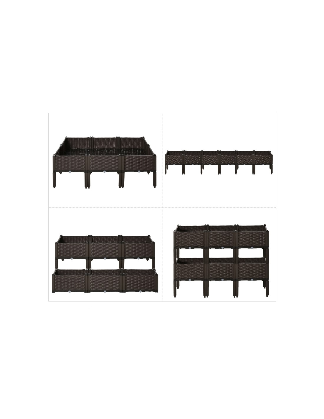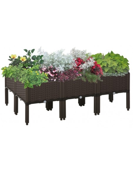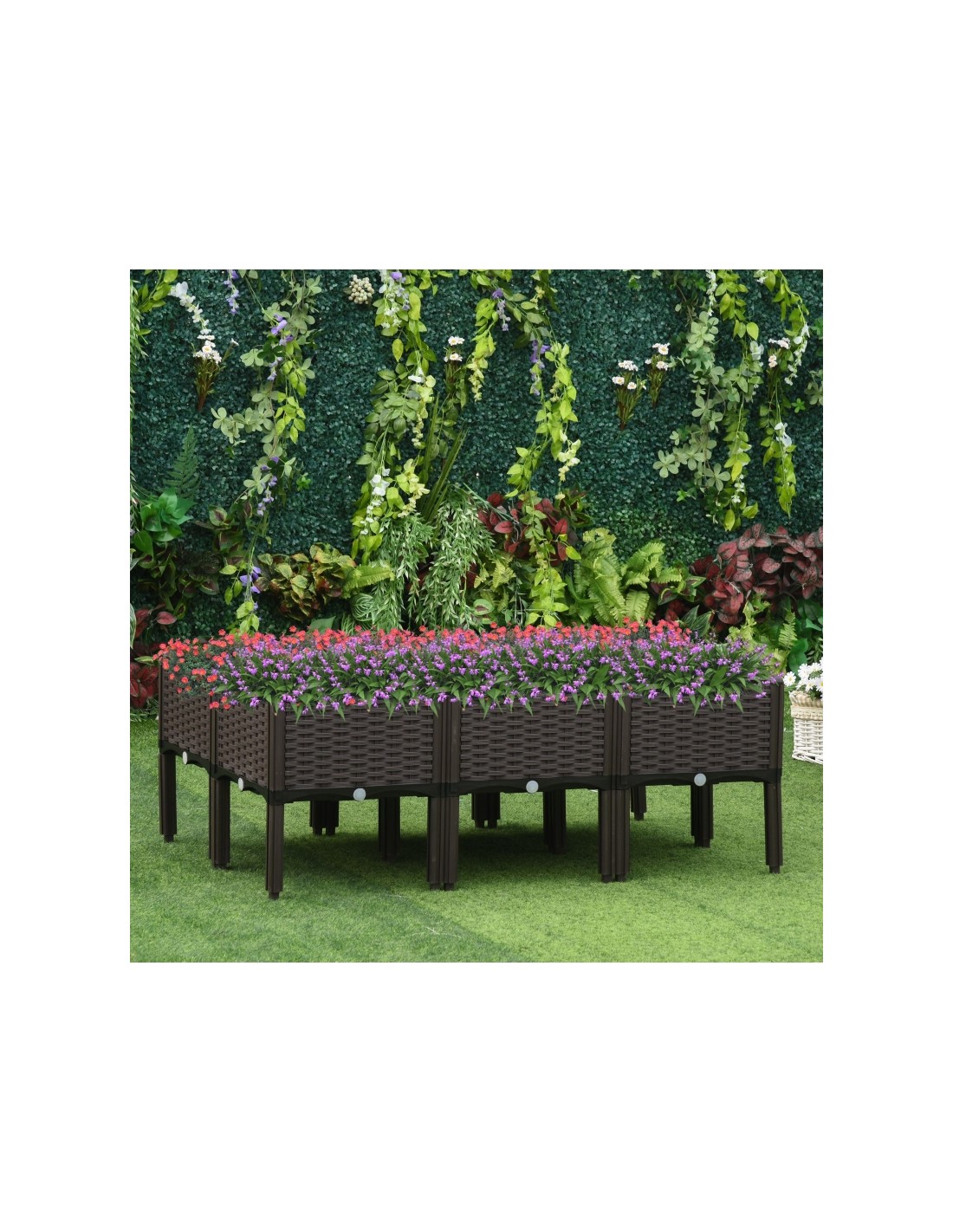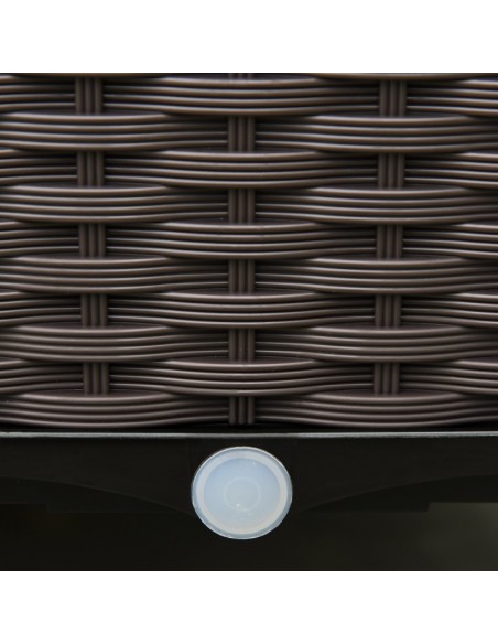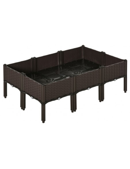 Højbed udført i et design af brunt kunststof. Højbedet måler 120 x 80 cm i bredde og dybde og 44 cm i højden. Højbedet er med selvvandende bund og med dræn.