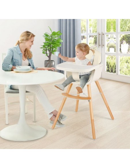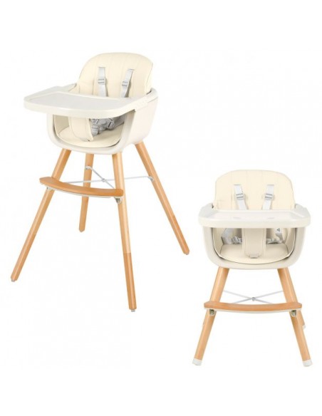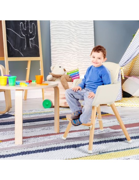 Højdejusterbar højstol i bøgetræ og kunststof H66 - 84 cm - Bøg/Beige
