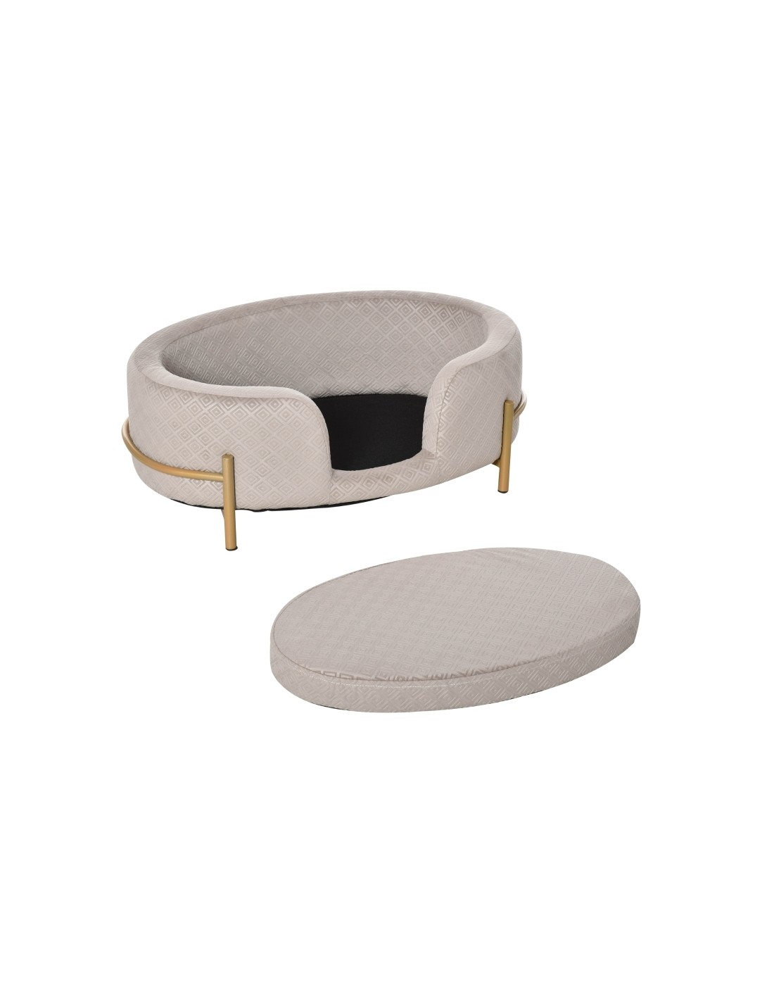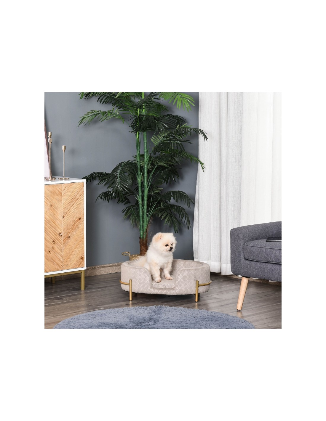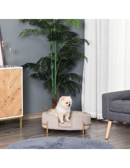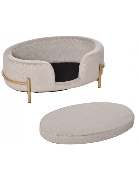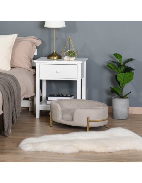 Hundesofa i metal og velour 64 x 40 x 24 cm - Guld/Grå