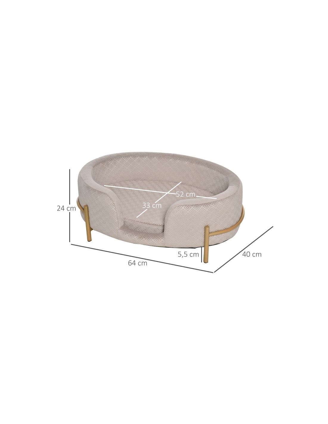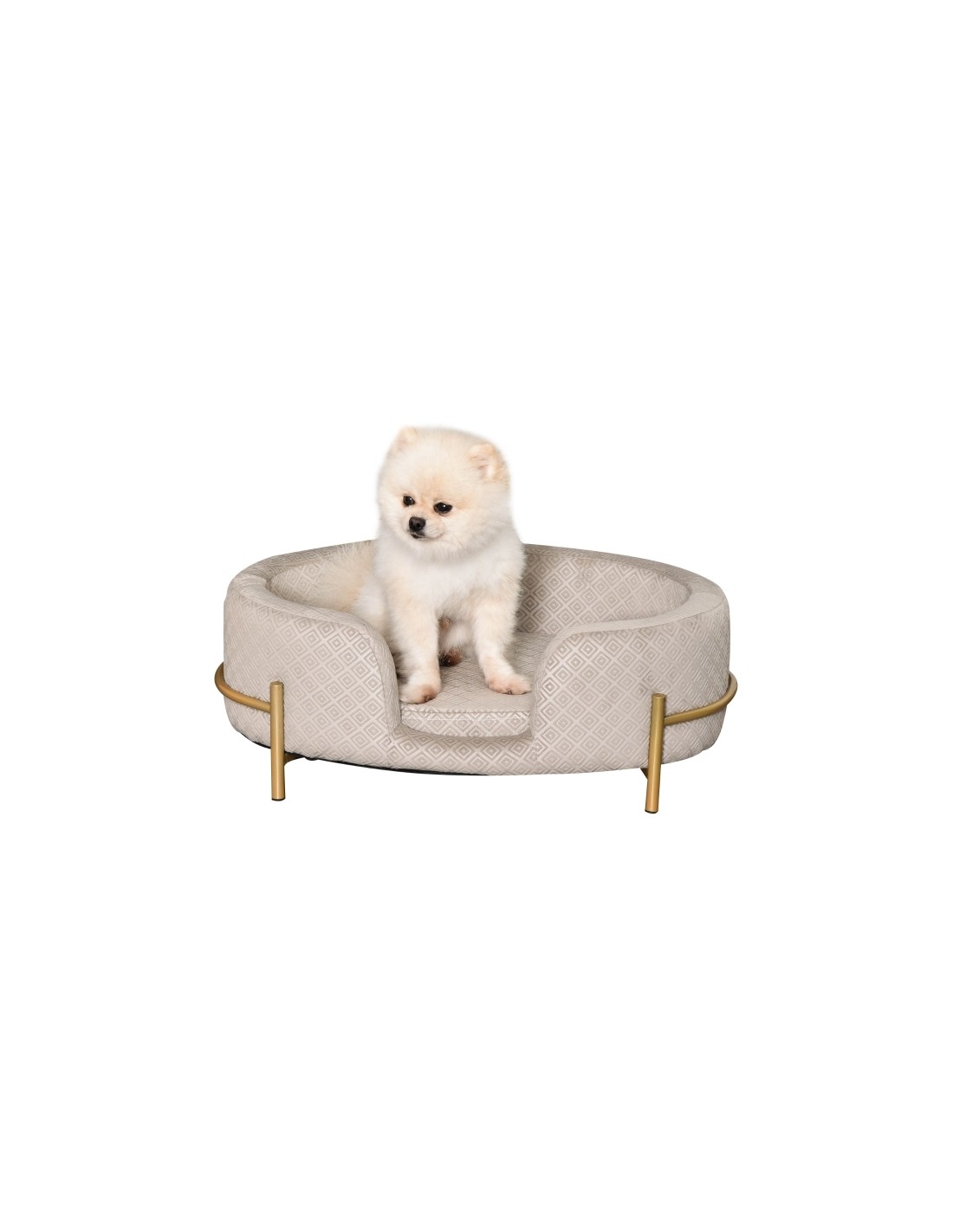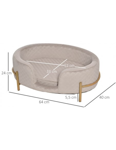 Hundesofa udført i et design af metal og velour. Hundesofaen måler 24 cm i højden og 64 x 40 cm i bredde og dybde. Vi anbefaler ikke at sengen udsættes for fugt eller regn.