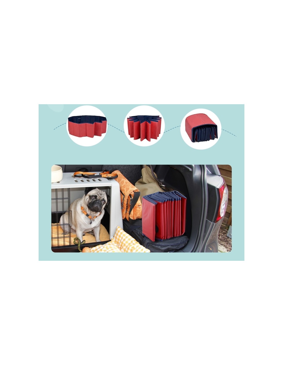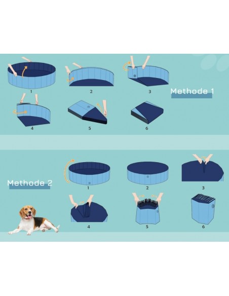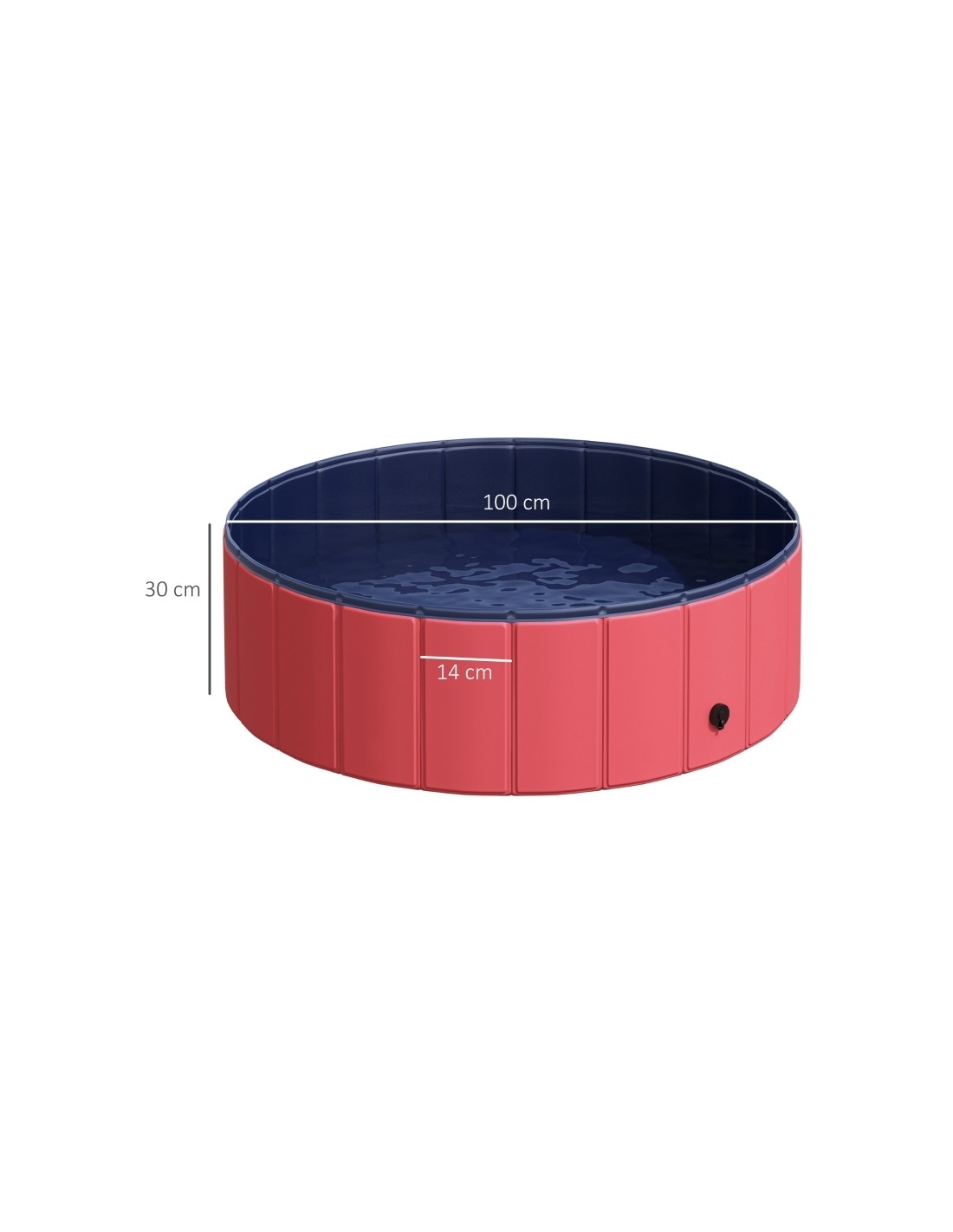 Badebassin til hunde, udført i et design af PVC med sider i træ for stabilitet. Badebassinet kan foldes sammen og er dermed lettere at transportere og opbevare. Bassinet måler 30 cm i højden og 100 cm i diameter.