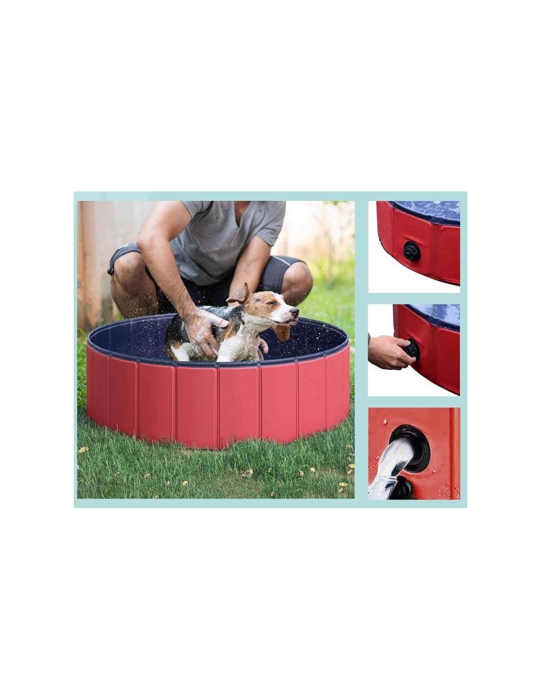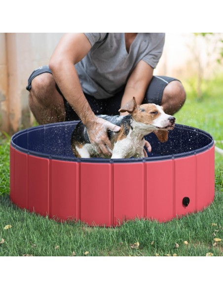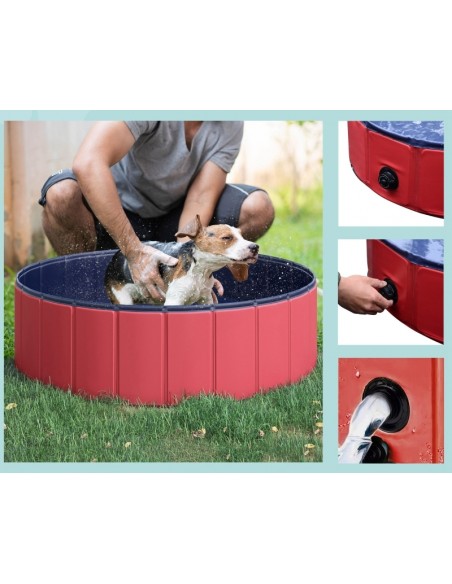 Badebassin til hunde i PVC og træ Ø100 x H30 cm - Rød