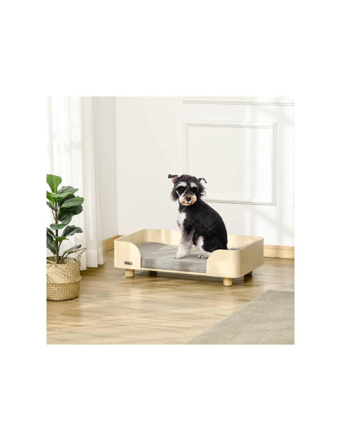 Hundeseng i fyrretræ og mdf 75,5 x 45,7 x 21 cm - Natur/Grå
