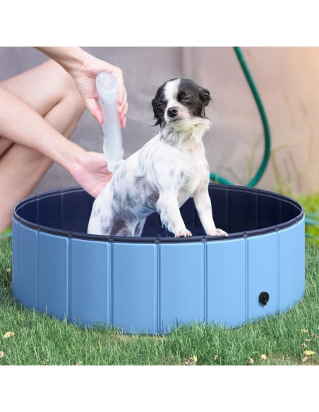 Badebassin til hunde i PVC og træ Ø100 x H30 cm - Blå