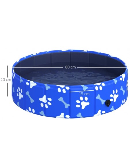 Badebassin til hunde, udført i et design af PVC med sider i træ for stabilitet. Badebassinet kan foldes sammen og er dermed lettere at transportere og opbevare. Bassinet måler 20 cm i højden og 80 cm i diameter.