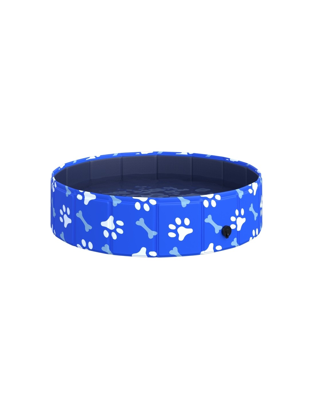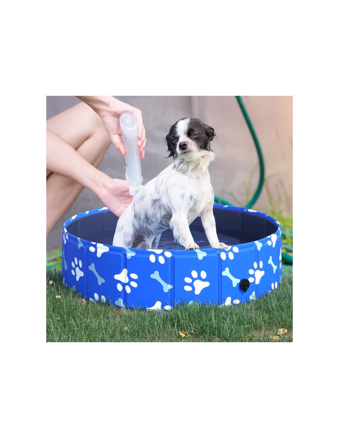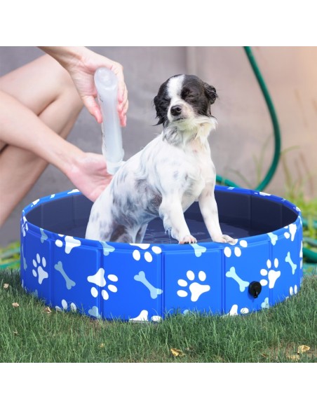 Badebassin til hunde i PVC og træ Ø80 x H20 cm - Blå