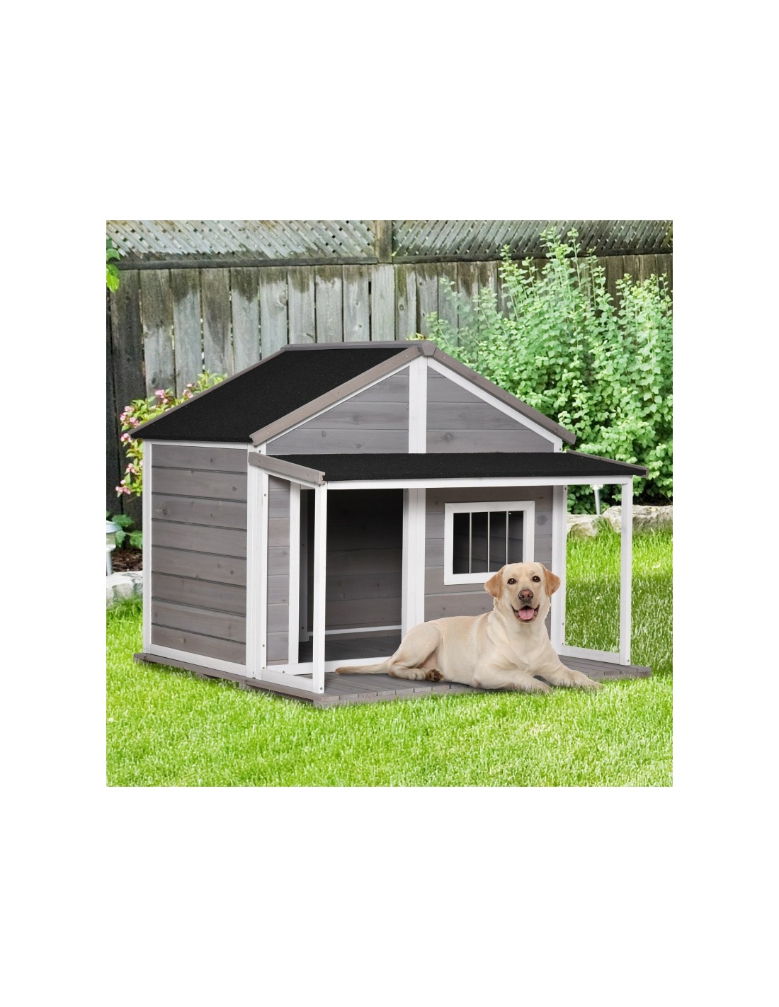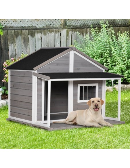 Hundehus i fyrretræ 127 x 112 x 109 cm - Hvid/Grå