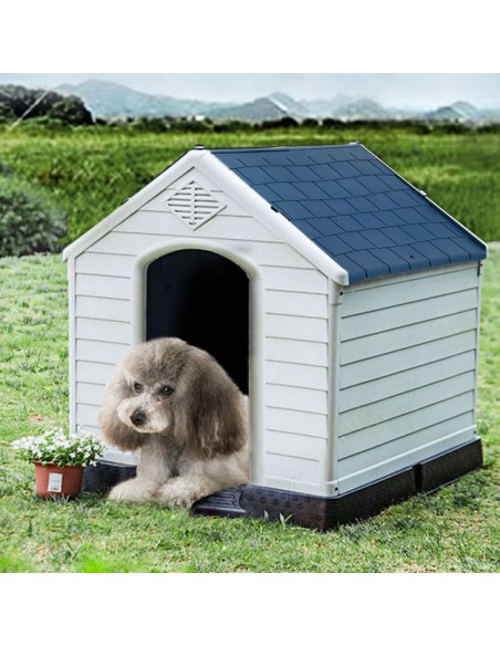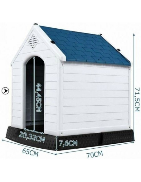 Hundehus i kunststof H71,5 x B70 x D65 cm - Hvid/Blå