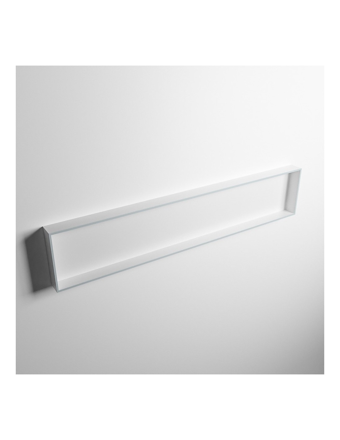EASY hylde til badeværelset, udført i et moderne og stilrent design i det solide materiale "Solid Surface", der ikke alene giver badeværelset et stilrent design, men samtidig er lækkert at røre ved. Hylden kan enten monteres direkte på væggen, eller indbygges. Hylden måler 149,5 x 29,5 cm i højde og bredde (ydermål).