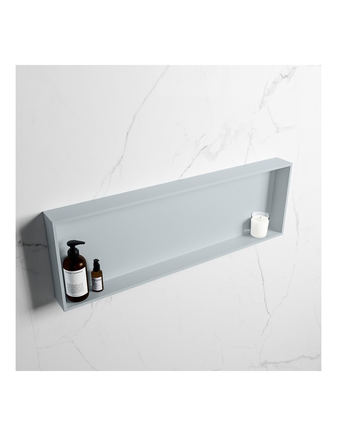 EASY hylde til badeværelset, udført i et moderne og stilrent design i det solide materiale "Solid Surface", der ikke alene giver badeværelset et stilrent design, men samtidig er lækkert at røre ved. Hylden kan enten monteres direkte på væggen, eller indbygges. Hylden måler 89,5 x 29,5 cm i højde og bredde (ydermål).