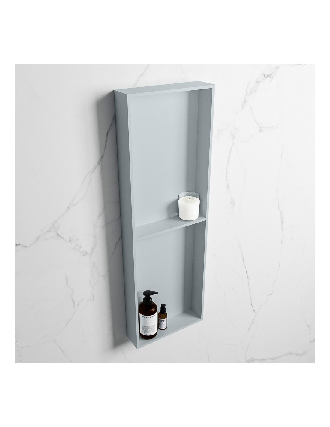 EASY hylde til badeværelset, udført i et moderne og stilrent design i det solide materiale "Solid Surface", der ikke alene giver badeværelset et stilrent design, men samtidig er lækkert at røre ved. Hylden kan enten monteres direkte på væggen, eller indbygges. Hylden måler 89,5 x 29,5 cm i højde og bredde (ydermål).