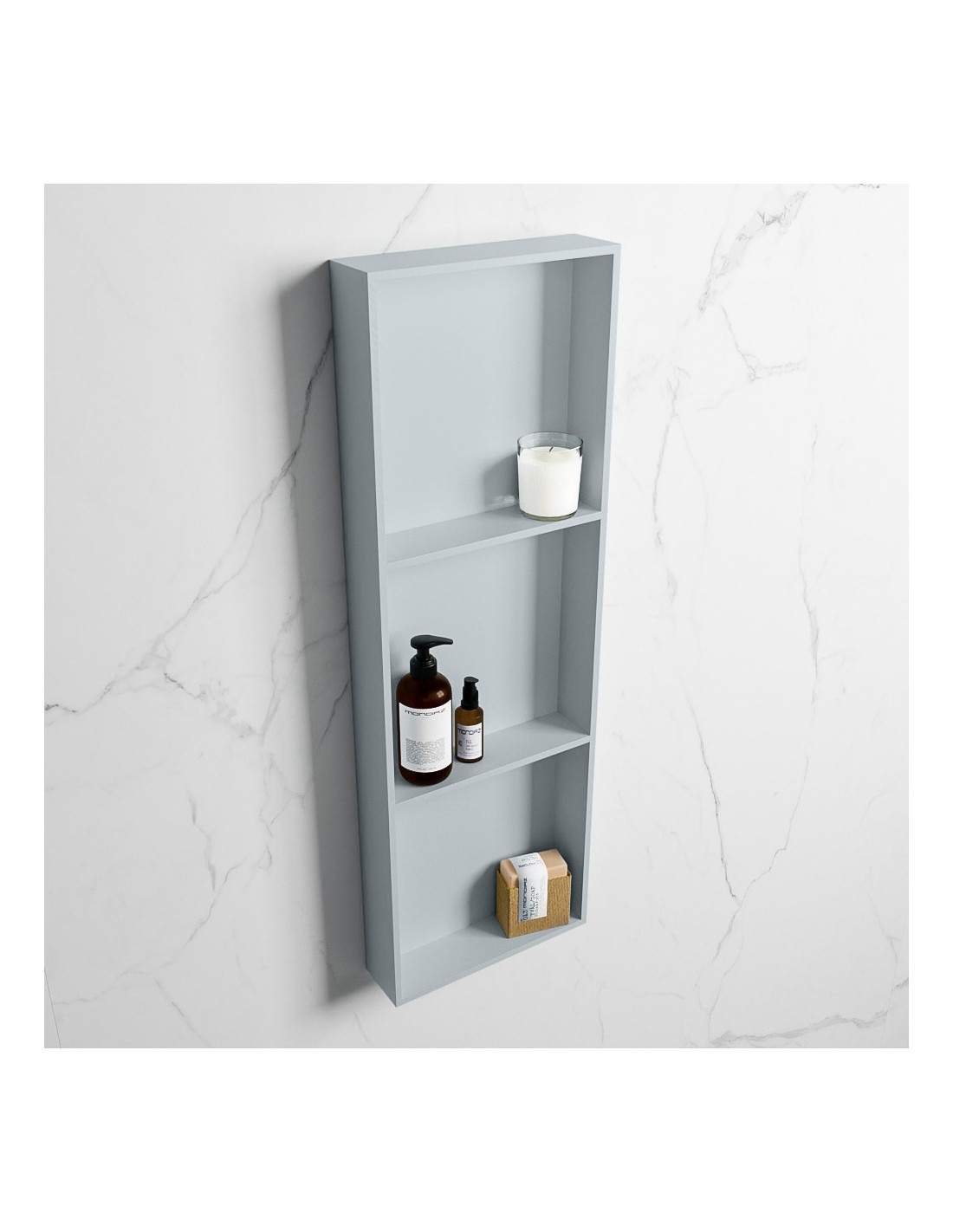 EASY hylde til badeværelset, udført i et moderne og stilrent design i det solide materiale "Solid Surface", der ikke alene giver badeværelset et stilrent design, men samtidig er lækkert at røre ved. Hylden kan enten monteres direkte på væggen, eller indbygges. Hylden måler 89,5 x 29,5 cm i højde og bredde (ydermål).
