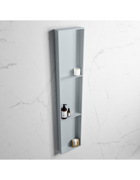 EASY hylde til badeværelset, udført i et moderne og stilrent design i det solide materiale "Solid Surface", der ikke alene giver badeværelset et stilrent design, men samtidig er lækkert at røre ved. Hylden kan enten monteres direkte på væggen, eller indbygges. Hylden måler 149,5 x 29,5 cm i højde og bredde (ydermål).