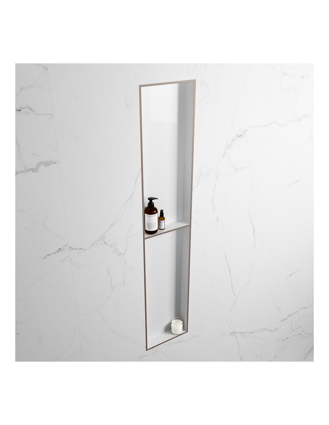 EASY hylde til badeværelset, udført i et moderne og stilrent design i det solide materiale "Solid Surface", der ikke alene giver badeværelset et stilrent design, men samtidig er lækkert at røre ved. Hylden kan enten monteres direkte på væggen, eller indbygges. Hylden måler 149,5 x 29,5 cm i højde og bredde (ydermål).